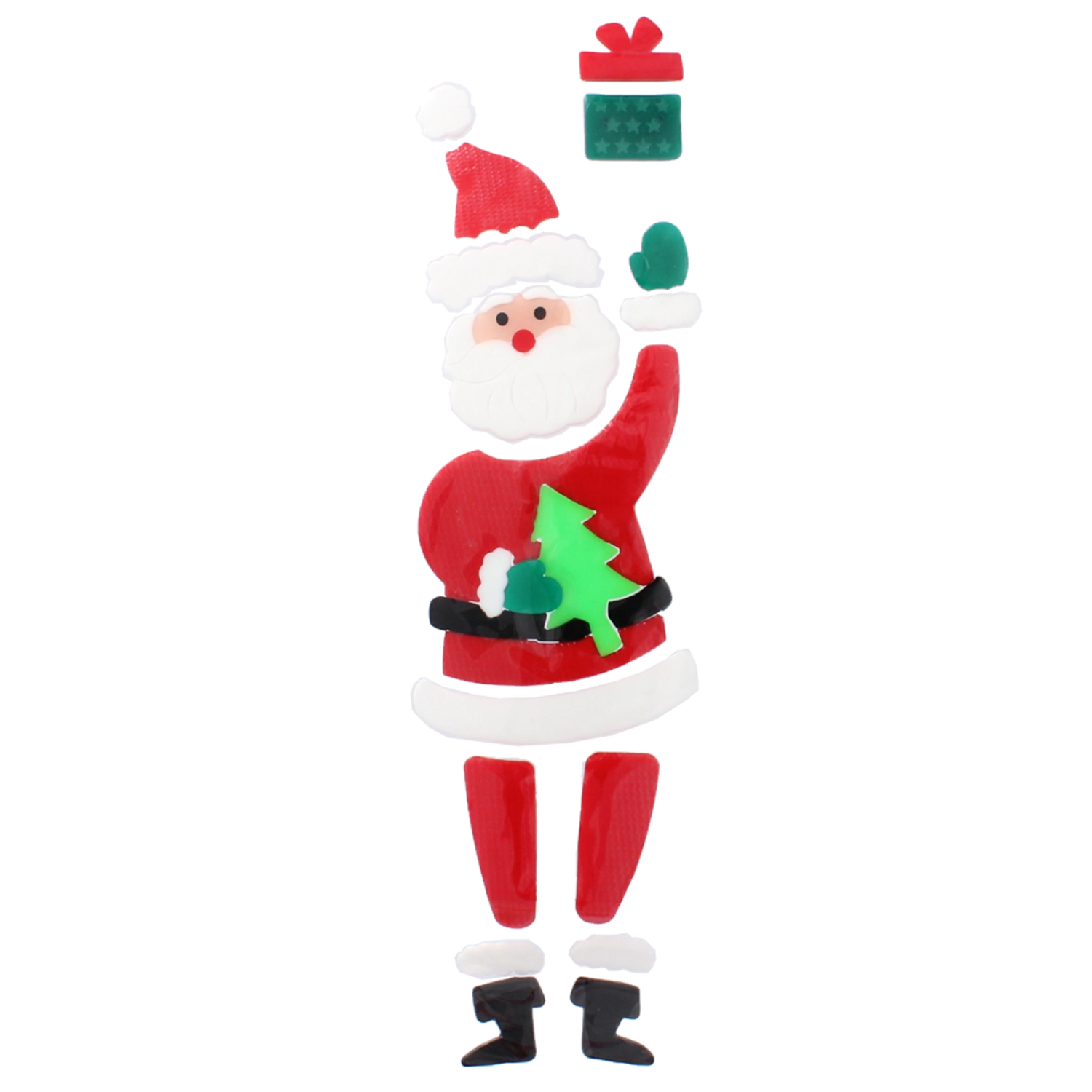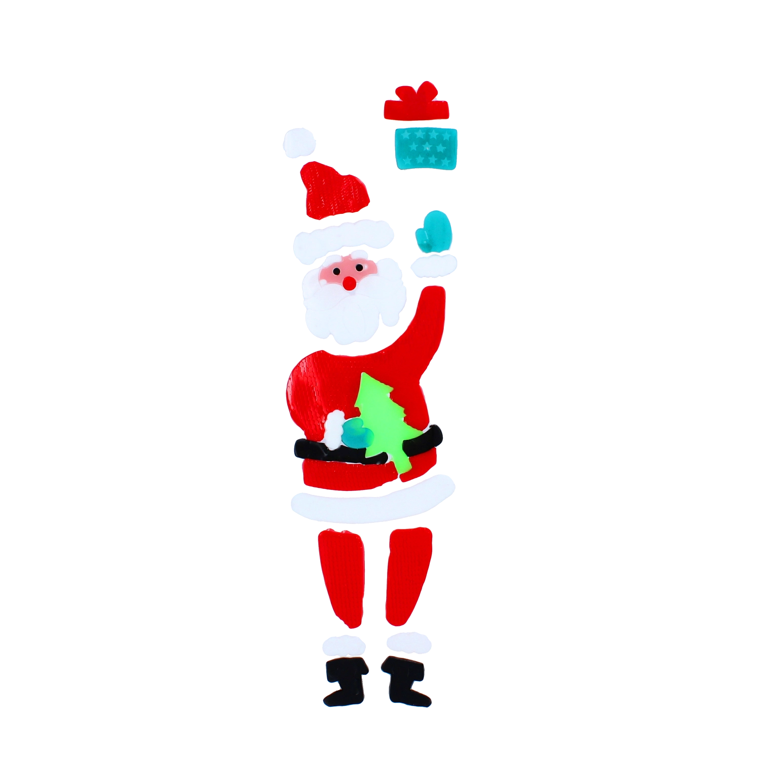 Le motif segmenté du PÈRE NOËL avec son cadeau se compose facilement sur le verre et se déplace à tout moment – sans colle et sans traces.