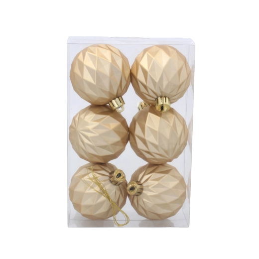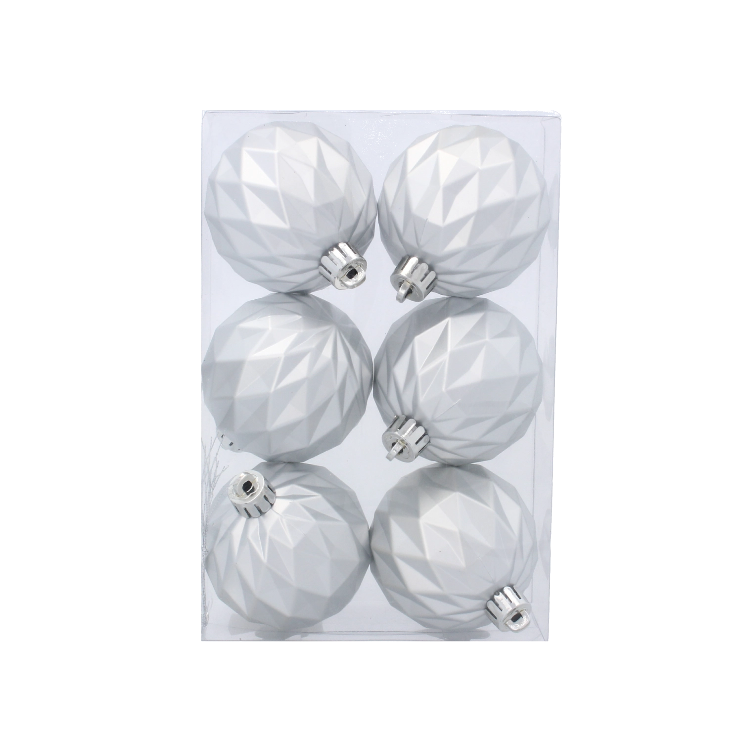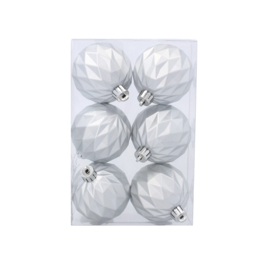 Ce set comprend 6 ornements légers et résistants avec un motif géométrique en diamant, créant de subtils reflets même en finition mate. Grâce à leur matériau incassable, ils sont idéaux pour les foyers avec enfants et animaux, et conviennent parfaitement à la décoration du sapin de Noël, des couronnes ou des guirlandes.