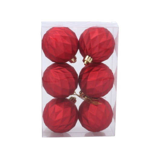 Donnez une touche moderne à votre sapin avec ce set de six boules de Noël de 6 cm de diamètre. En plastique incassable et au design géométrique mat, elles garantissent une allure élégante, une suspension facile et une longue durée de vie. La combinaison stylée de rouge, or et argent s’accorde parfaitement avec la plupart des décorations de fête.