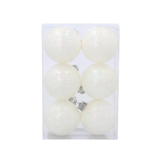 Élégant set de boules de Noël blanches d’un diamètre de 6 cm, apportant à votre sapin une allure épurée et stylée. Le plastique léger et incassable est sûr pour les enfants comme pour les animaux, et grâce aux attaches pratiques, la suspension est rapide et facile. S’accorde parfaitement avec une décoration rouge, or ou argentée.