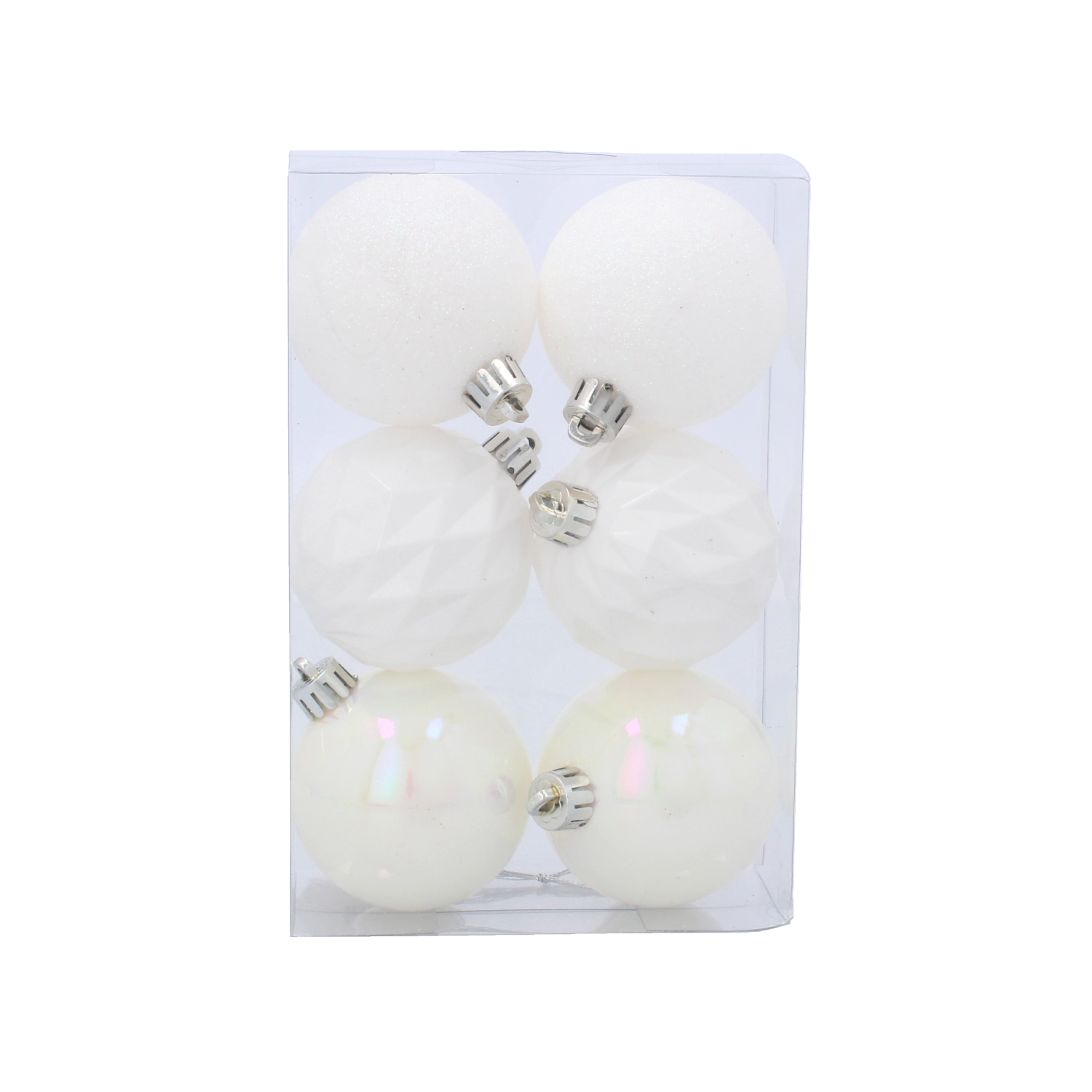 Chaque boule est équipée d’un œillet de suspension métallique et l’ensemble est rangé dans une boîte pratique pour un stockage ordonné après les fêtes. La combinaison des finitions mate, nacrée et facettée crée un rendu harmonieux et luxueux, adapté aux décorations traditionnelles comme modernes.