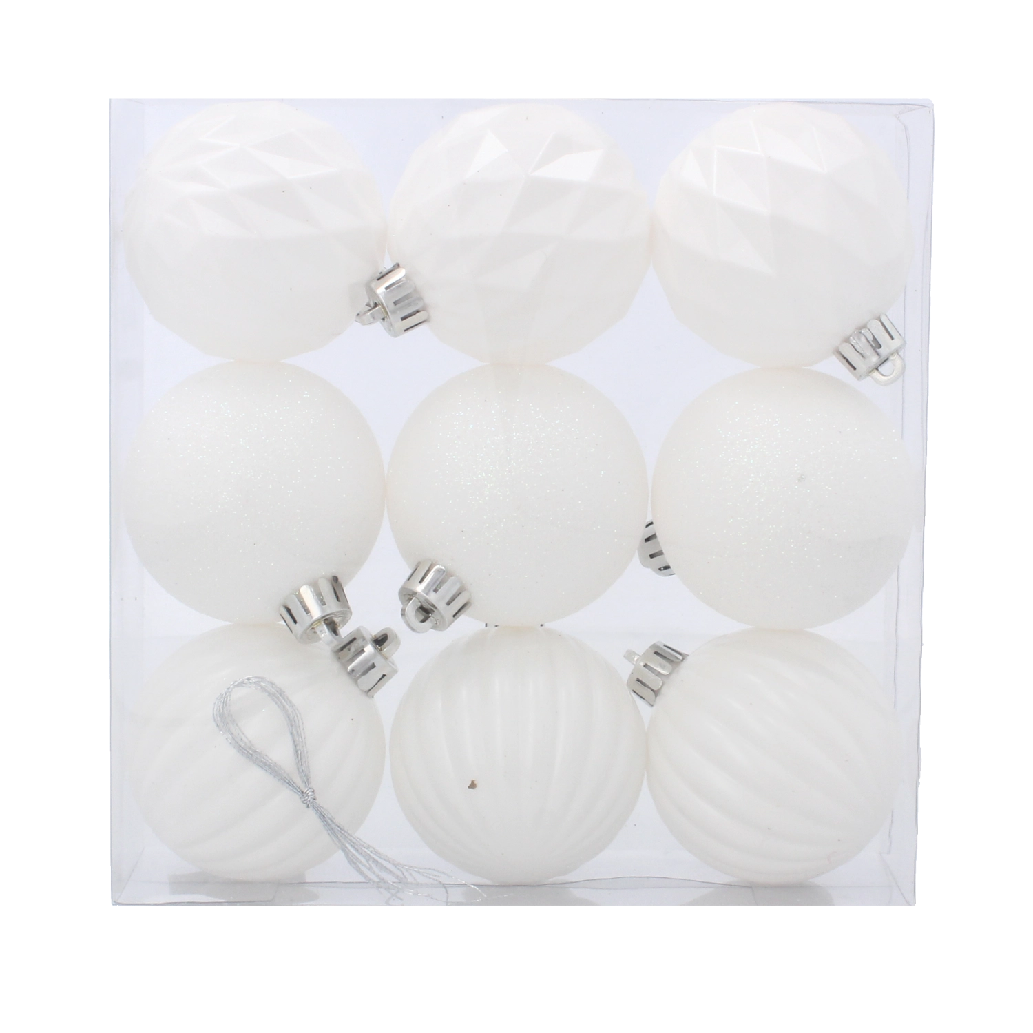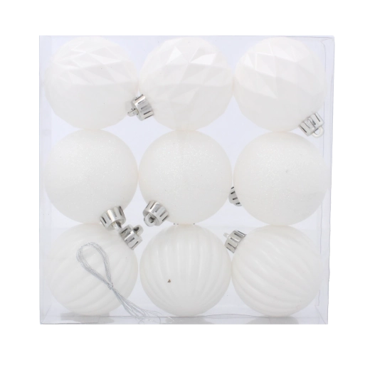 Set de 9 boules de Noël blanches 6 cm – mates, brillantes et pailletées
