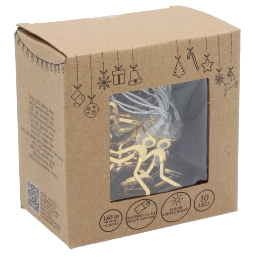 Apportez la magie de Noël chez vous avec une guirlande LED ornée de étoiles métalliques dorées 3D. Sa lumière blanc chaud crée une atmosphère cosy et, grâce à l’alimentation à piles (2× AA), vous pouvez l’installer partout sans câbles – sur une table, une commode, une cheminée ou une couronne.