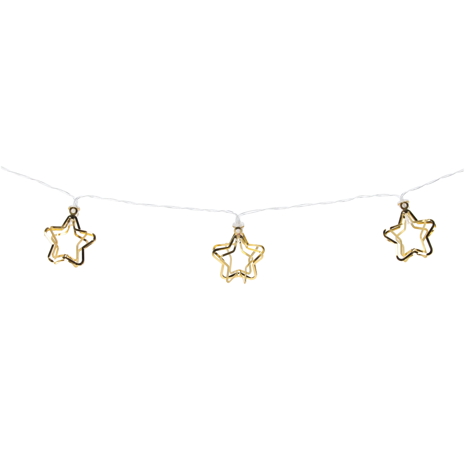 Guirlande lumineuse LED étoiles métalliques dorées 3D, 10 LED, à piles