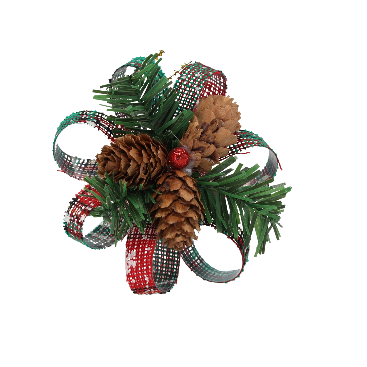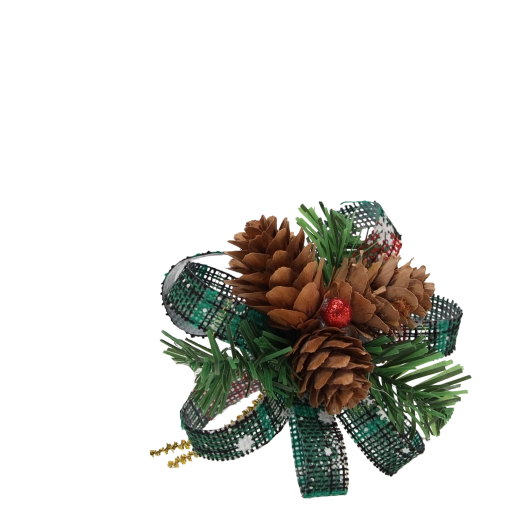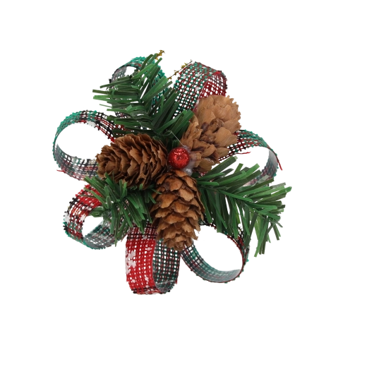 Pommes de pin naturelles, aiguilles artificielles, rubans décoratifs