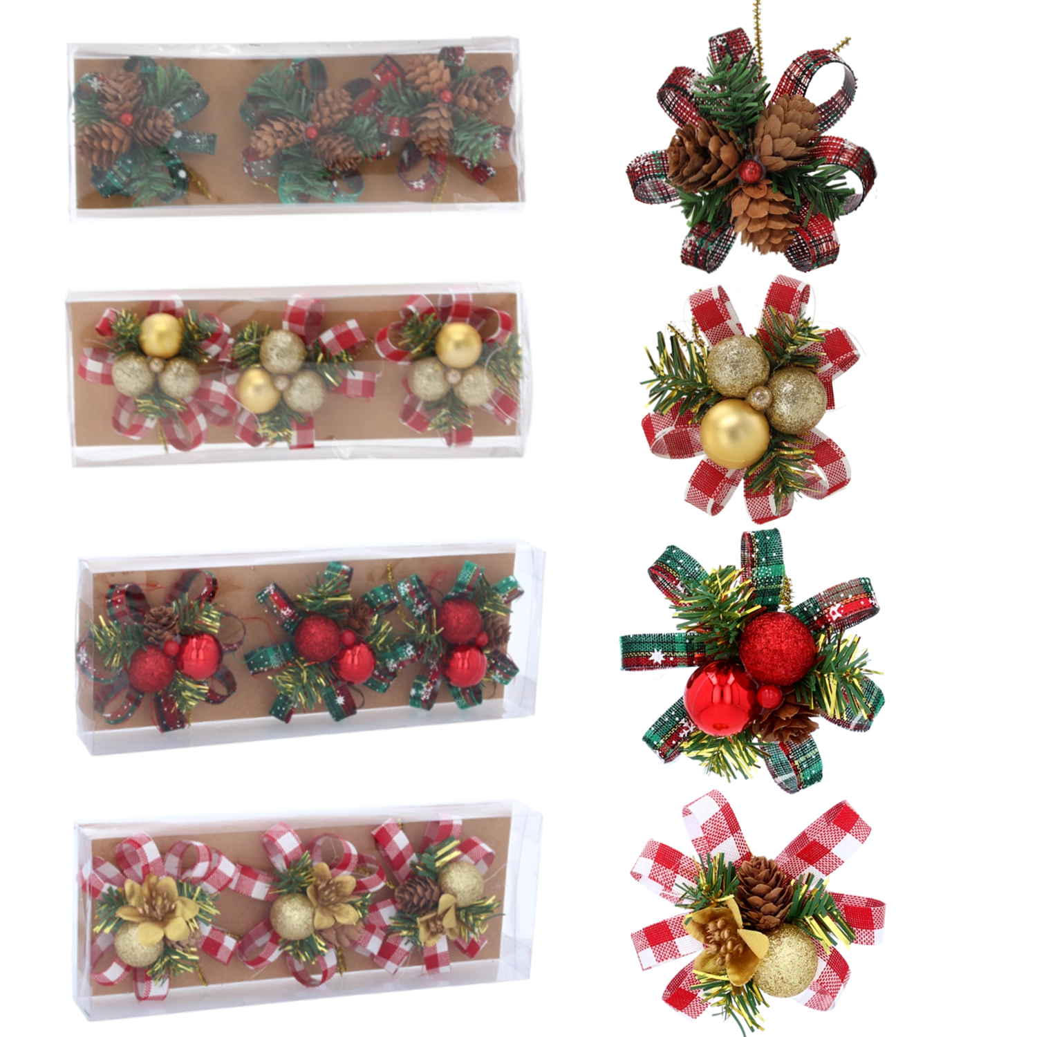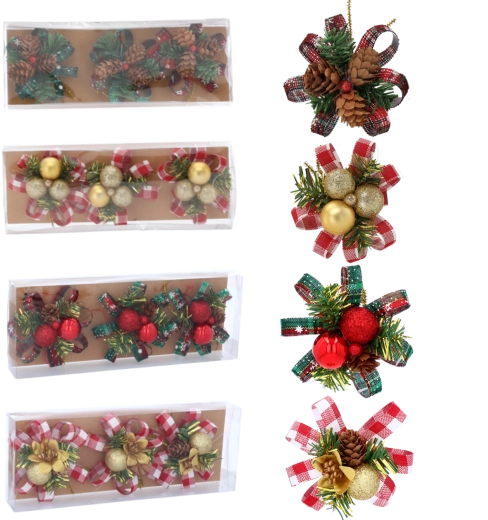 Set de décorations de Noël avec pommes de pin et aiguilles 10 cm – 3 pcs
