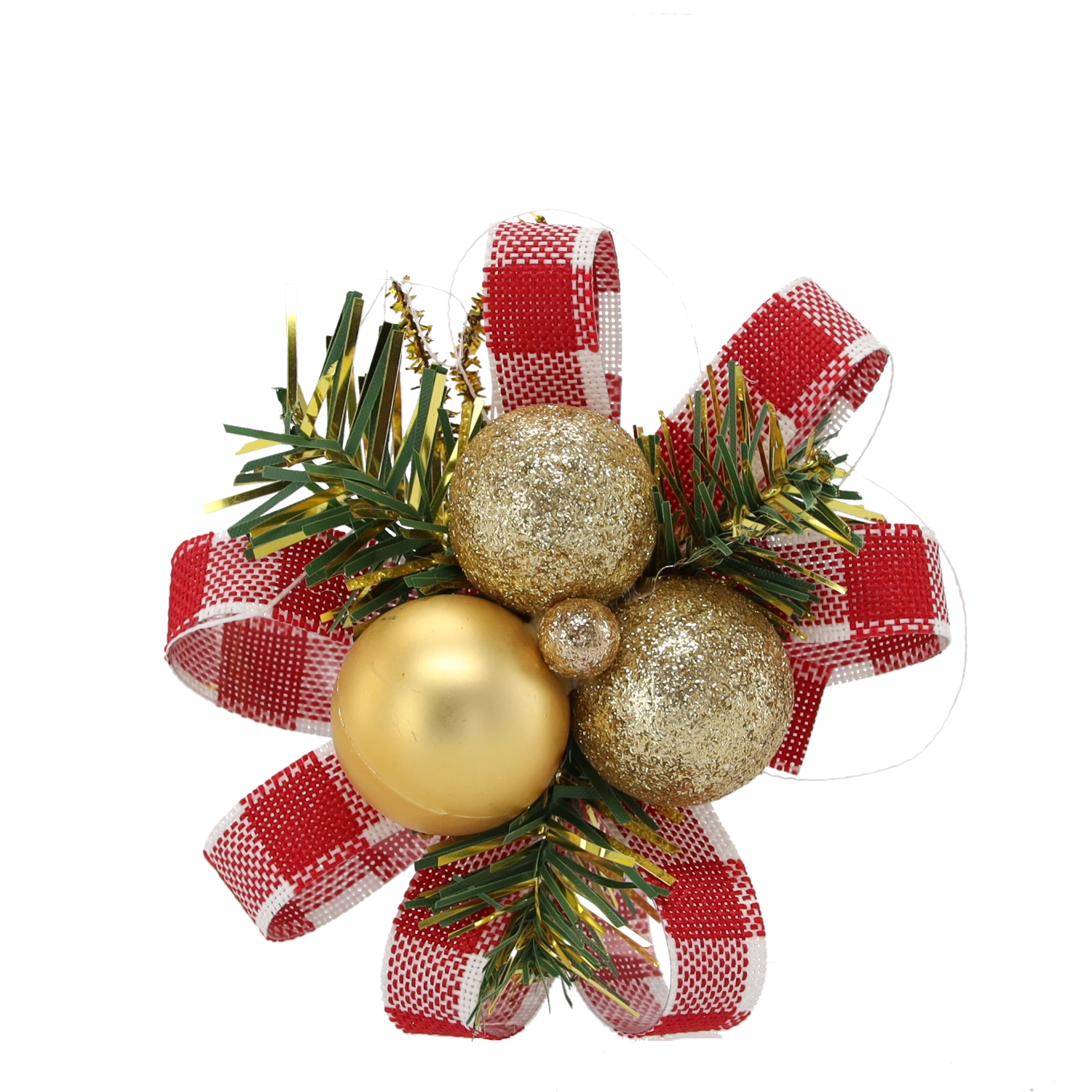 Créez à la maison une véritable ambiance festive avec un set de trois décorations de Noël de 10 cm de diamètre, qui associent des boules brillantes et mates à des pommes de pin naturelles, des aiguilles artificielles et des rubans décoratifs. Leur conception légère et le pratique crochet en fil métallique permettent une suspension facile sur le sapin, les couronnes et les guirlandes.