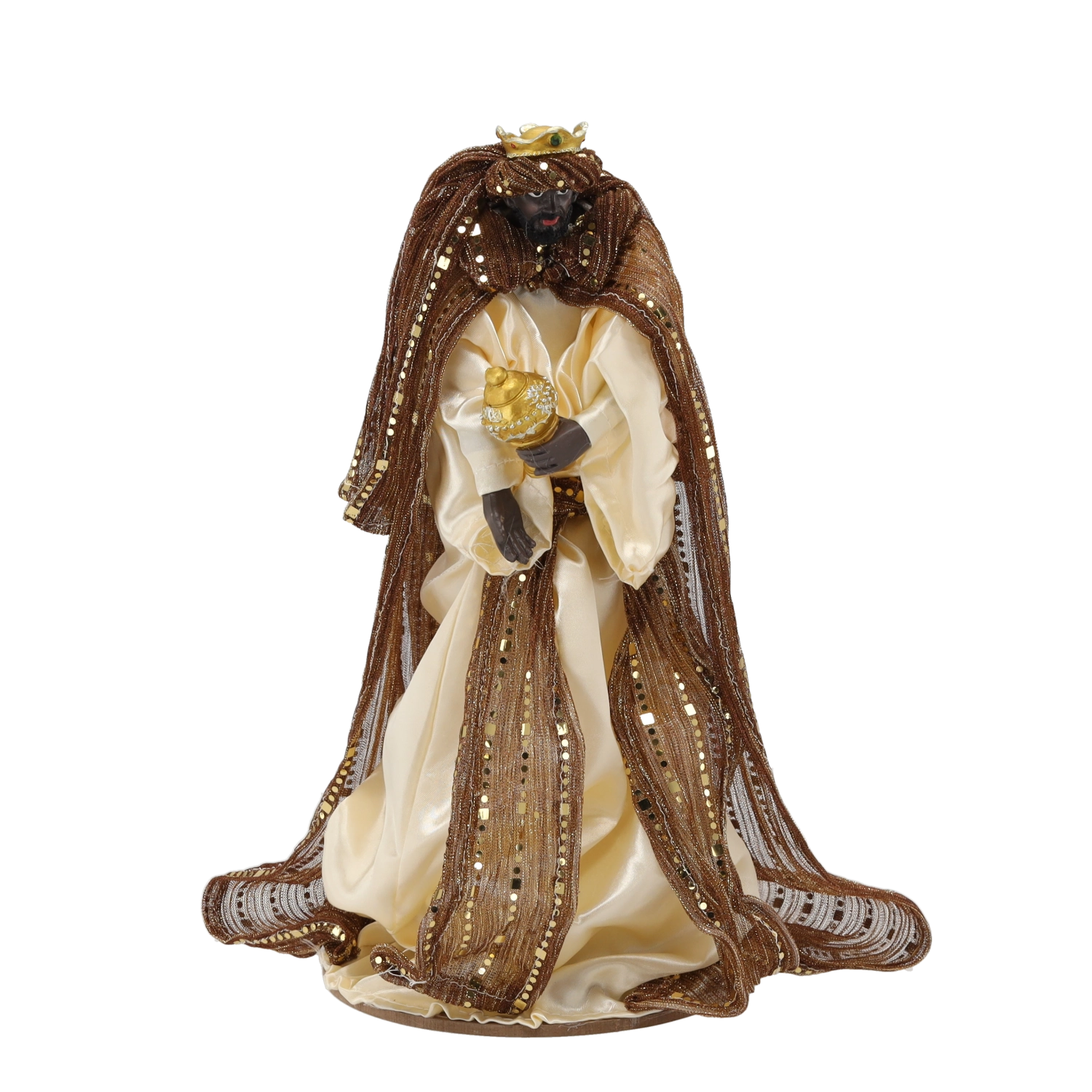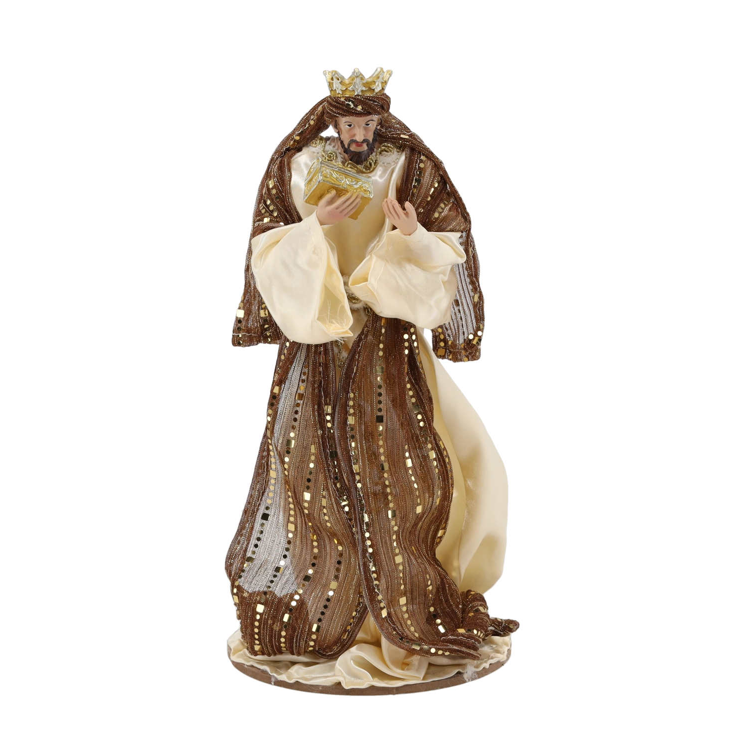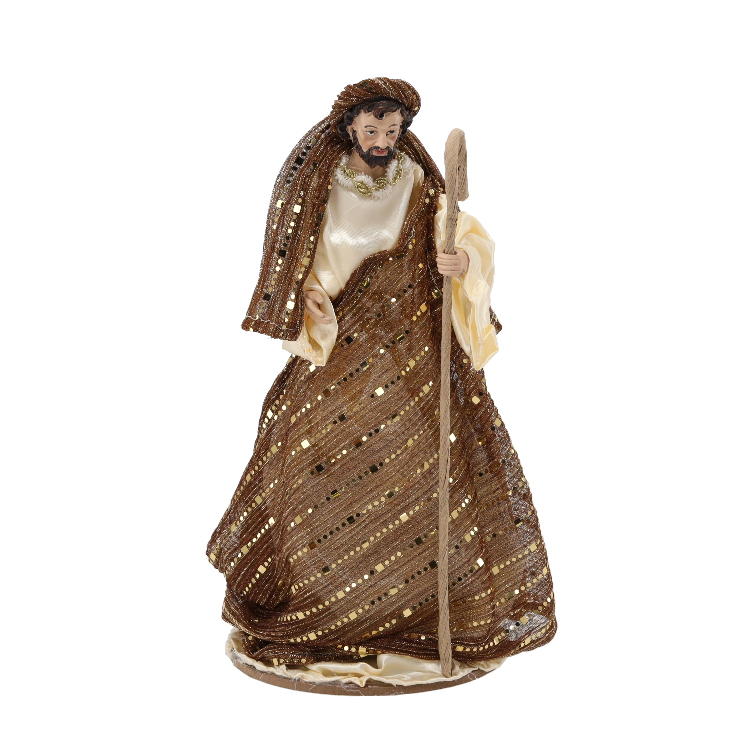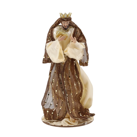 Des traits réalistes, des vêtements texturés et des tons brun doré confèrent aux figurines une apparence représentative qui s’intègre à tout intérieur.