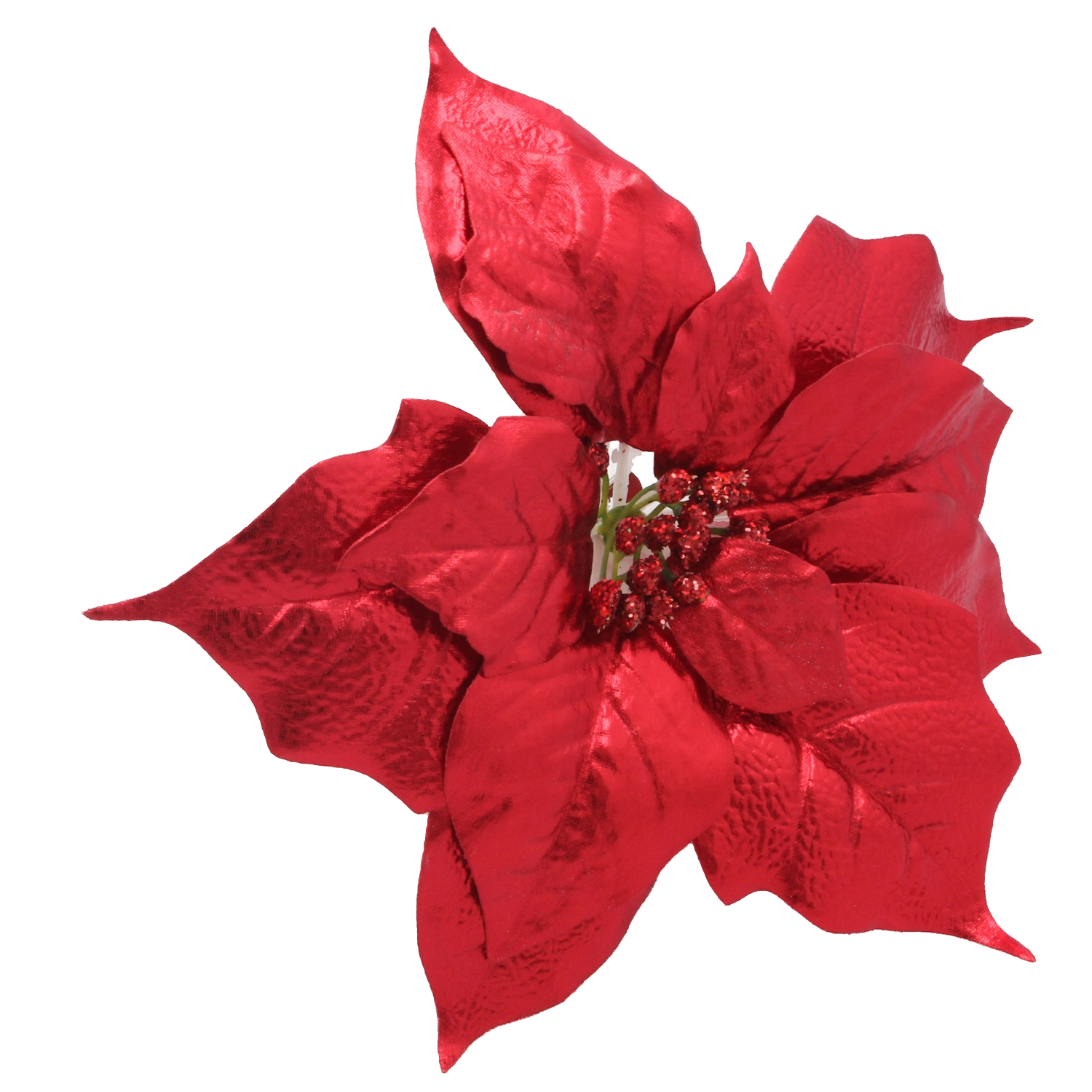 Les pétales texturés avec un léger brocart imitent fidèlement la poinsettia naturelle et apportent une touche d’éclat festif à vos compositions.
