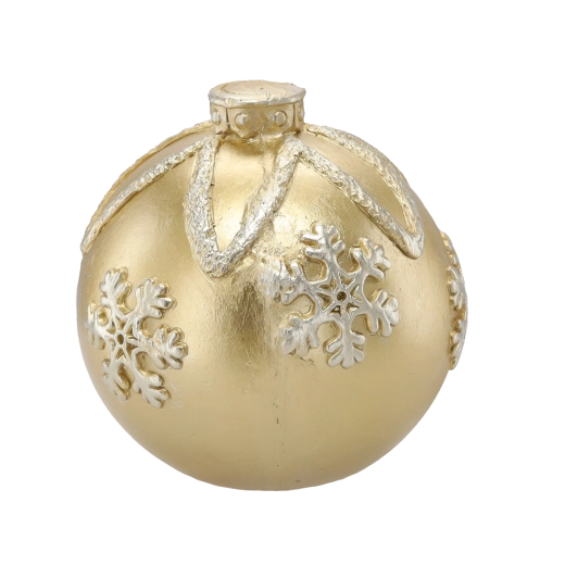 Élégante boule de Noël dorée d’un diamètre de 21,5 cm qui apporte à votre intérieur une atmosphère festive. Sa surface brillante et ses motifs de flocons de neige en relief en font une décoration marquante pour les grands sapins de Noël comme pour des compositions autonomes. Fabriquée en matériau de qualité, résistant pour une longue durée de vie.