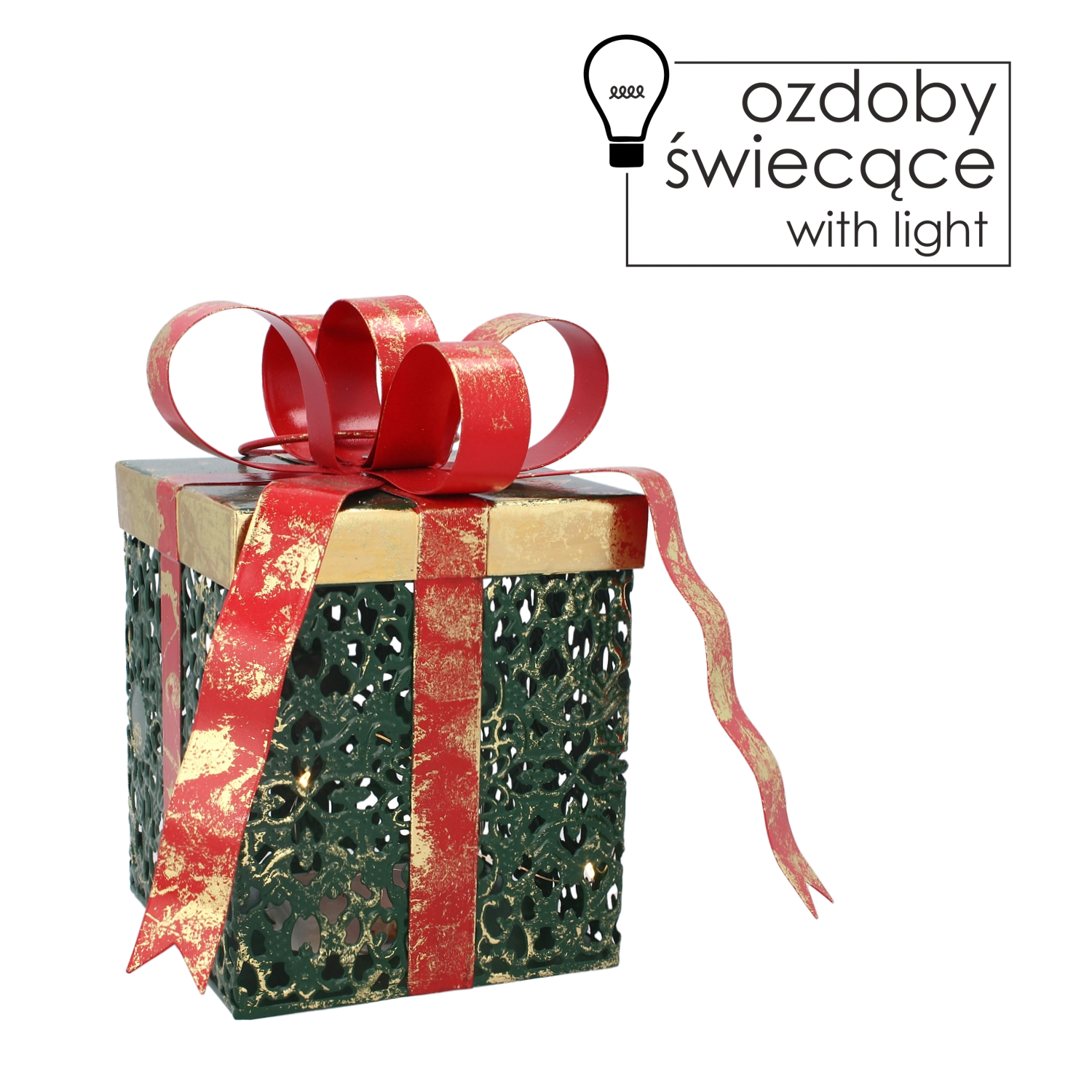 Cette décoration métallique en forme de cadeau est un choix parfait pour parfaire votre décoration de Noël. Grâce à la lumière LED blanc chaud, elle crée un éclairage du soir agréable, propice à une atmosphère calme et harmonieuse. Son design minimaliste est complété par un nœud rouge spectaculaire qui souligne le caractère festif.
