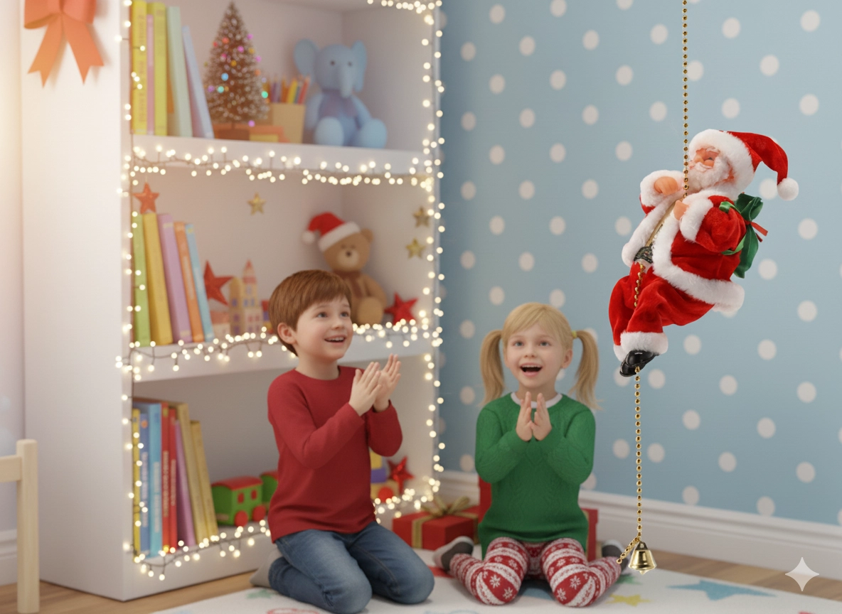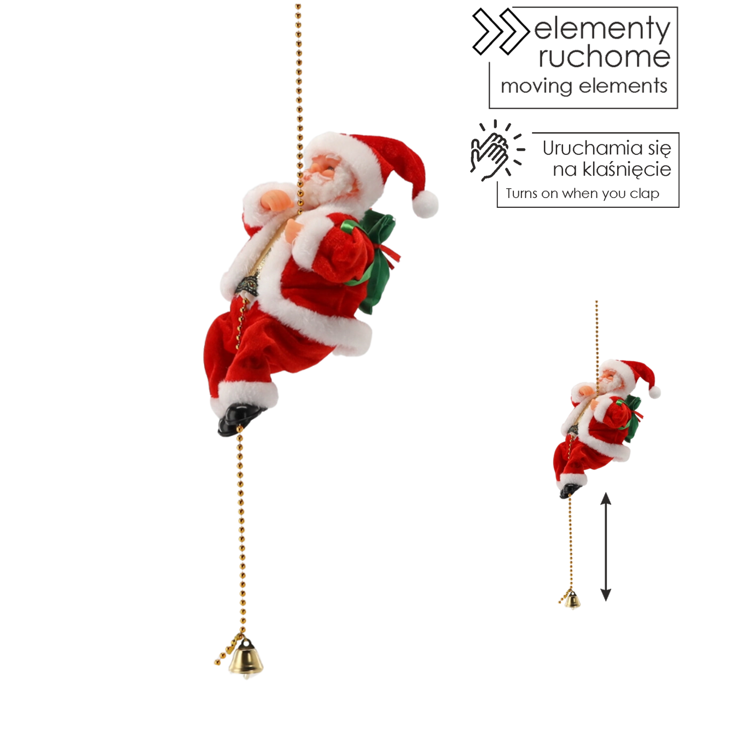 Le Père Noël « grimpe » sur une chaîne dorée et crée une ambiance festive vivante dans tout intérieur – du salon à la chambre d’enfant.