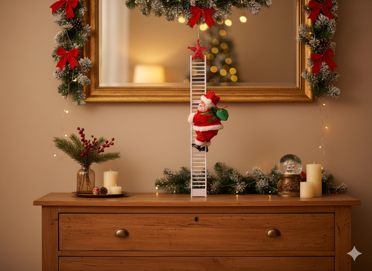 Cette charmante décoration de Noël avec Saint‑Nicolas sur une échelle illumine instantanément tout intérieur. Le mouvement réaliste de la figurine et la mélodie intégrée instaurent en un clin d’œil une chaleureuse atmosphère de fête. Grâce à l’alimentation par piles, vous pouvez l’installer partout : salon, chambre d’enfant, bureau ou vitrine.
