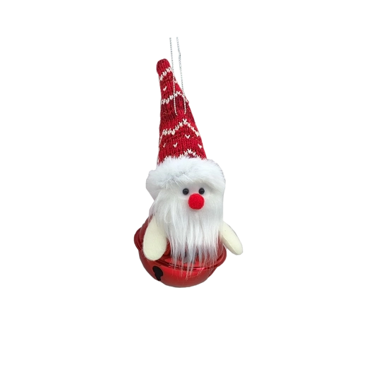 Cette décoration de Noël allie le charme traditionnel des fêtes à une conception durable. Le corps en forme de cloche rouge brillante est agrémenté de détails textiles — chapeau ou bonnet, écharpe et, pour le Père Noël, une barbe duveteuse — qui apportent de la personnalité à la décoration. Chaque pièce est subtilement finalisée par une peinture à la main pour un rendu authentique.