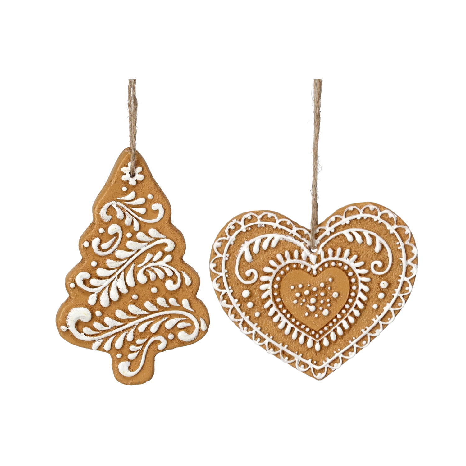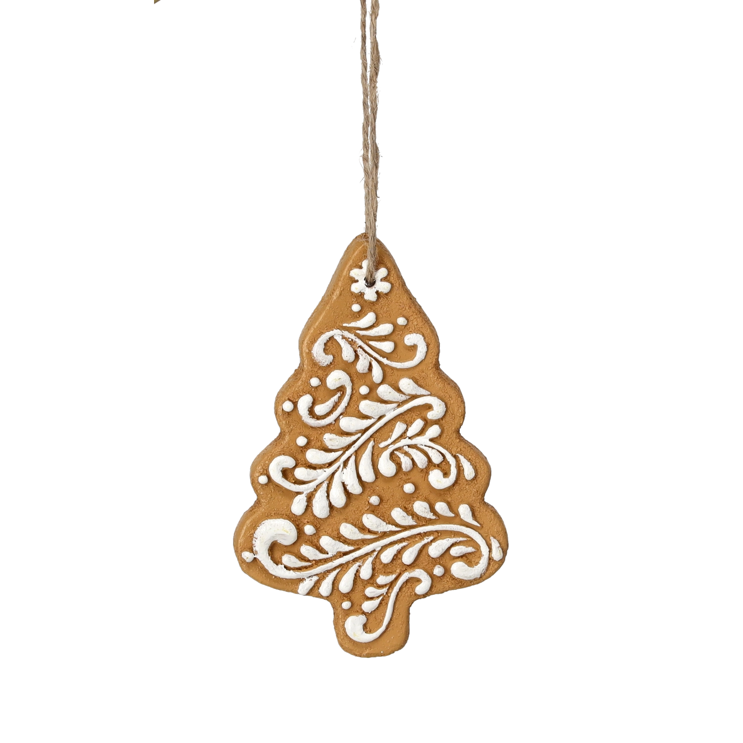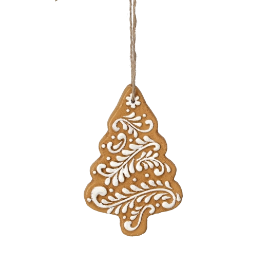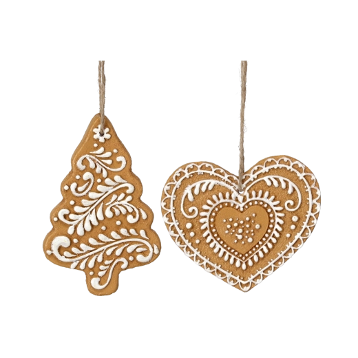 Ces décorations en forme de biscuits pain d’épices allient l’aspect artisanal aux avantages des matériaux modernes. Grâce à leur faible poids, elles se suspendent aisément et se démarquent joliment sur les branches du sapin, les couronnes et dans les compositions festives à travers tout l’intérieur.