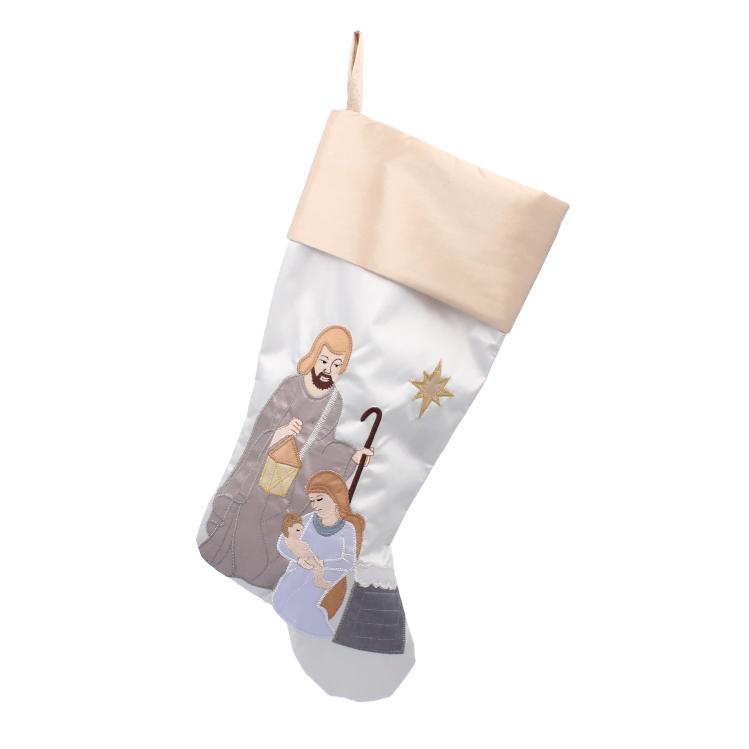Cette chaussette de Noël au motif de la Sainte Famille est un beau rappel du véritable sens de Noël. Grâce à son travail soigné et à son textile doux, elle deviendra un élément apprécié de votre décoration festive — que vous la suspendiez au-dessus de la cheminée, au mur, à une rampe d’escalier ou sur un grand sapin.