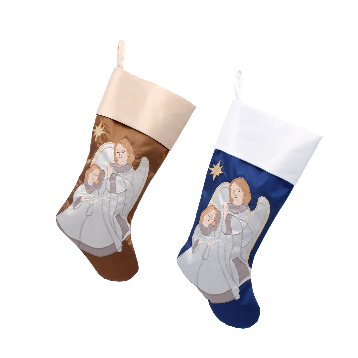 Chaussette de Noël avec anges – décoration textile avec boucle