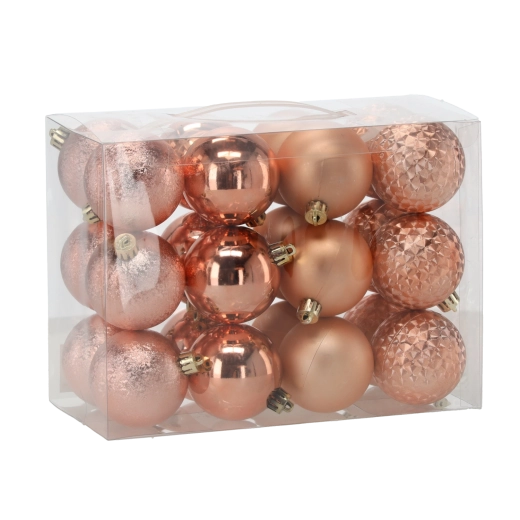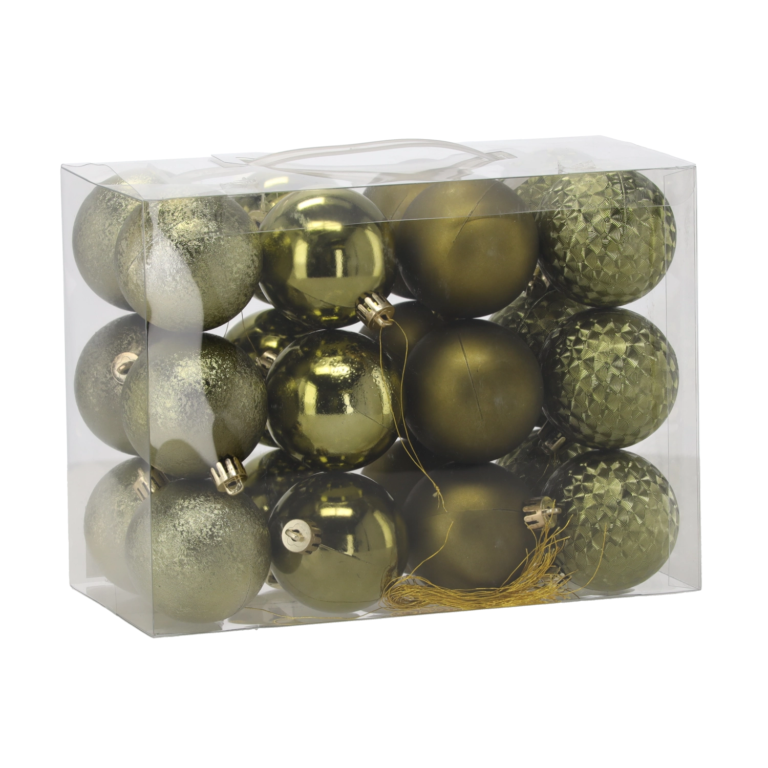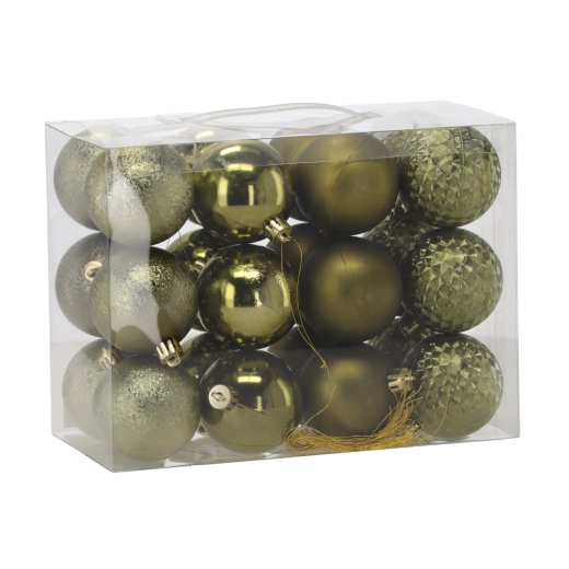 Ensemble de boules de Noël 6 cm, 24 pcs – olive, cuivré et graphite, décorations en plastique incassables