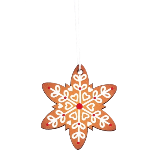 Apportez une atmosphère de Noël traditionnelle à votre intérieur avec un set de 18 décorations en bois en forme de flocons de neige. Chaque pièce est soigneusement découpée dans du bois de qualité, affiche un aspect rustique brun naturel et, grâce aux décors blanc-rouge, se distingue parfaitement sur le sapin, la guirlande ou la couronne. Les décorations sont durables et incassables, se suspendent facilement à l’aide d’un ruban et constituent un choix idéal pour une décoration écologique et durable.