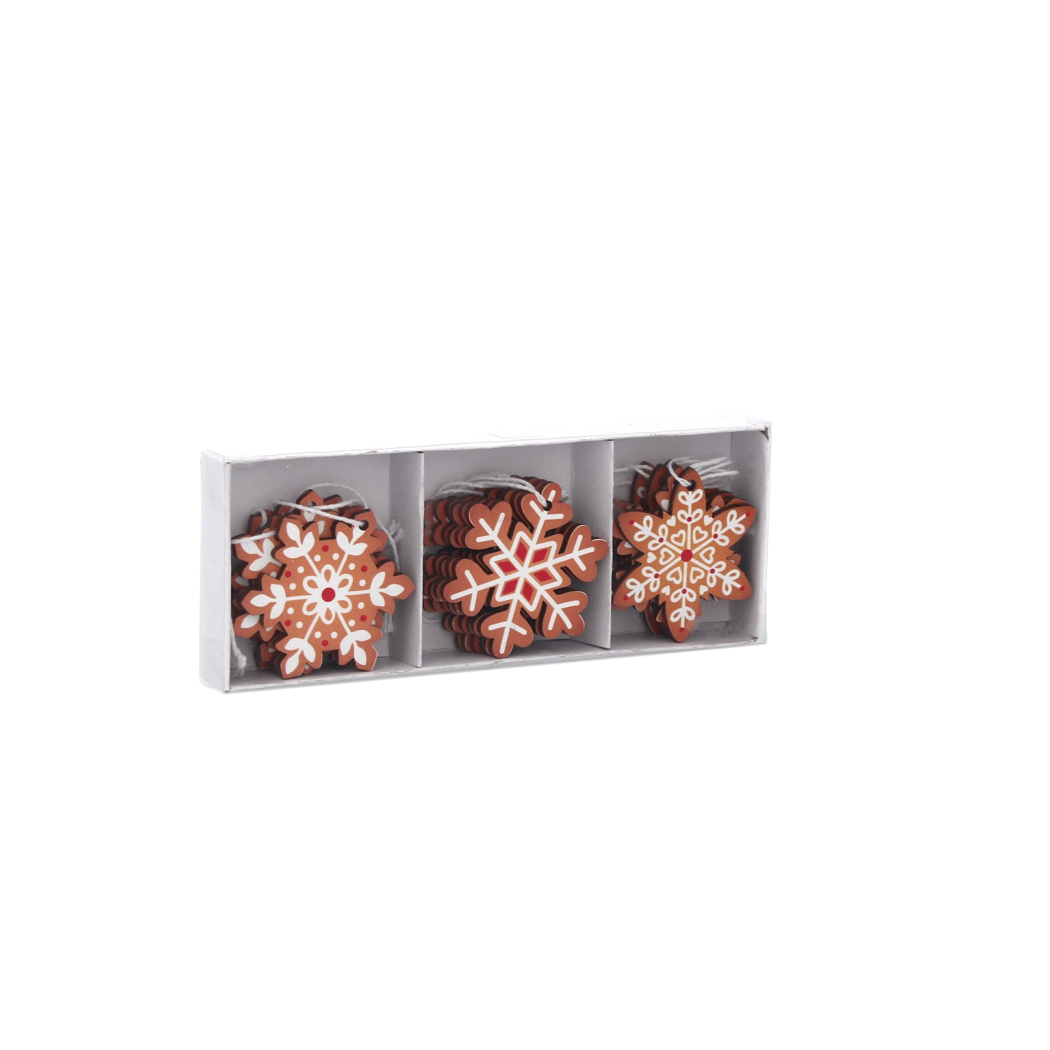 Le set propose un mélange de 3 flocons de neige uniques dans des tons bruns harmonieux avec des détails blancs et rouges. Vous créez ainsi facilement une composition de Noël équilibrée et esthétique.