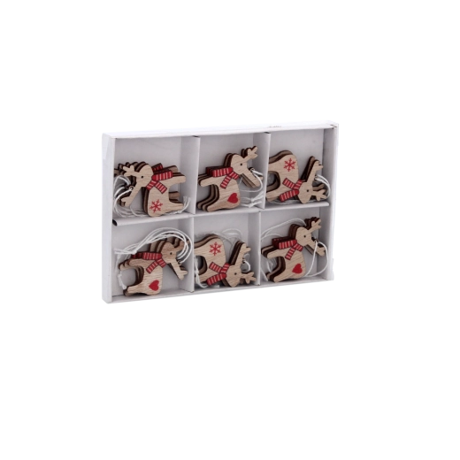 Set de 18 décorations de Noël en bois en forme de rennes CHOMIK