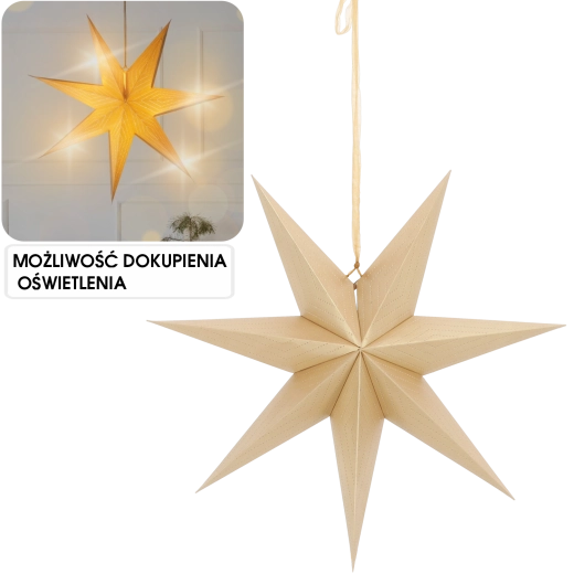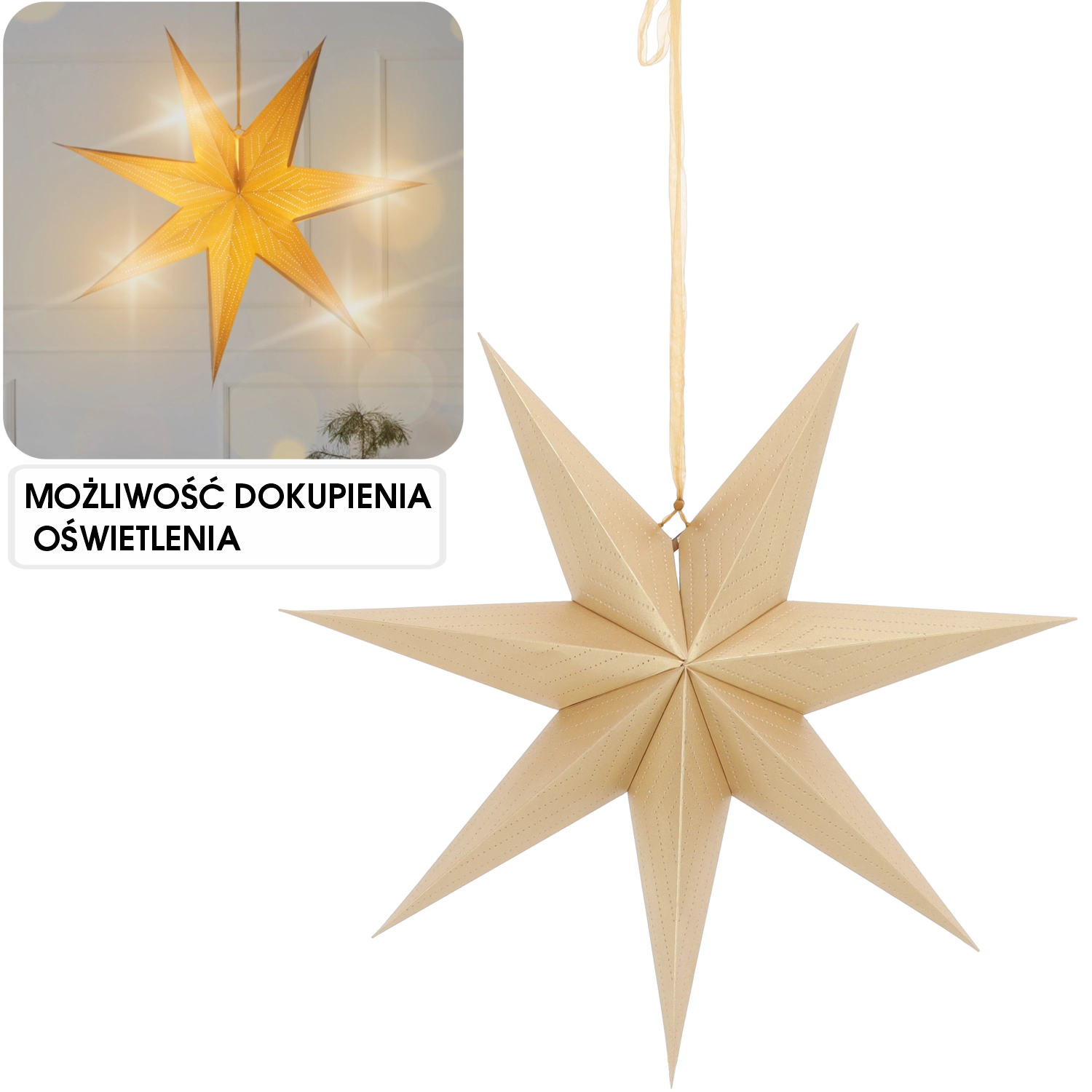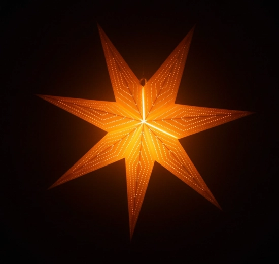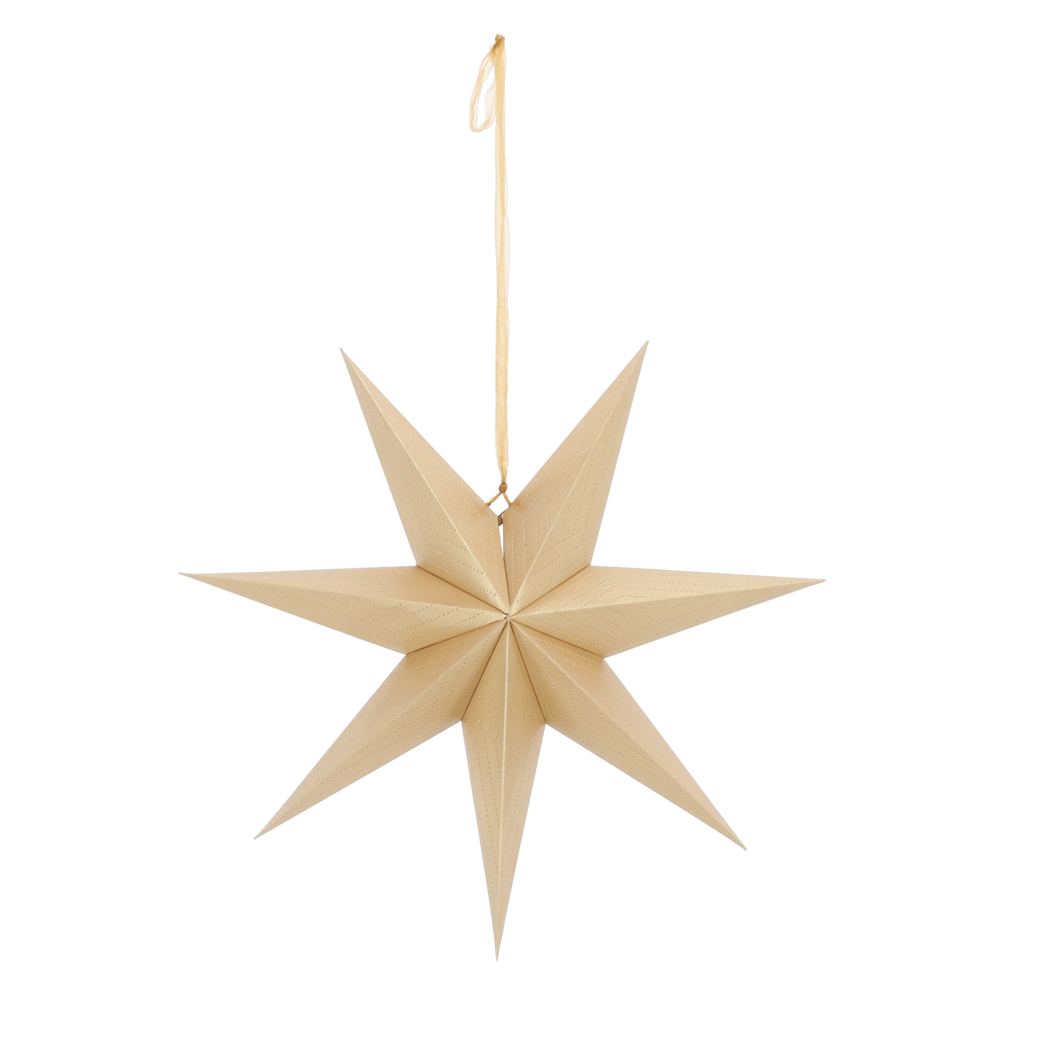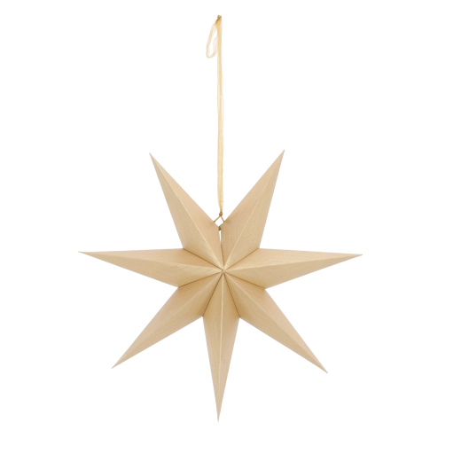Élégante étoile décorative de 60 cm de diamètre dans une luxueuse teinte dorée, elle apporte à votre intérieur une ambiance festive. Sa forme à sept branches et son fin motif perforé créent de superbes effets lumineux, surtout près d’une source de lumière. Elle est facile à suspendre, pliante et fabriquée en papier certifié FSC – un choix à la fois beau et écologique pour la fenêtre, le mur ou au-dessus de la table.