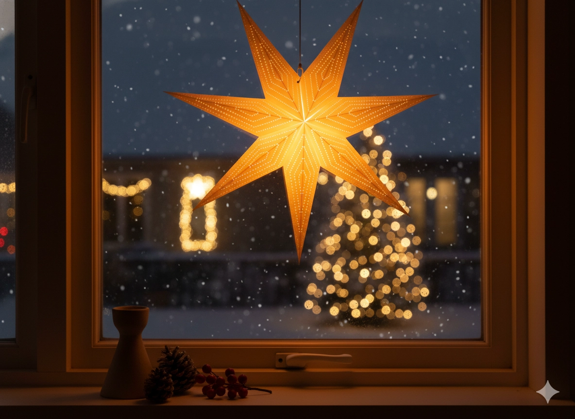Sa structure légère permet une suspension aisée à la fenêtre, au mur ou au-dessus de la table à manger. Une fois les fêtes terminées, pliez-la simplement et rangez-la pour l’année suivante. Le matériau durable certifié FSC souligne un choix écologique sans compromis sur l’esthétique.