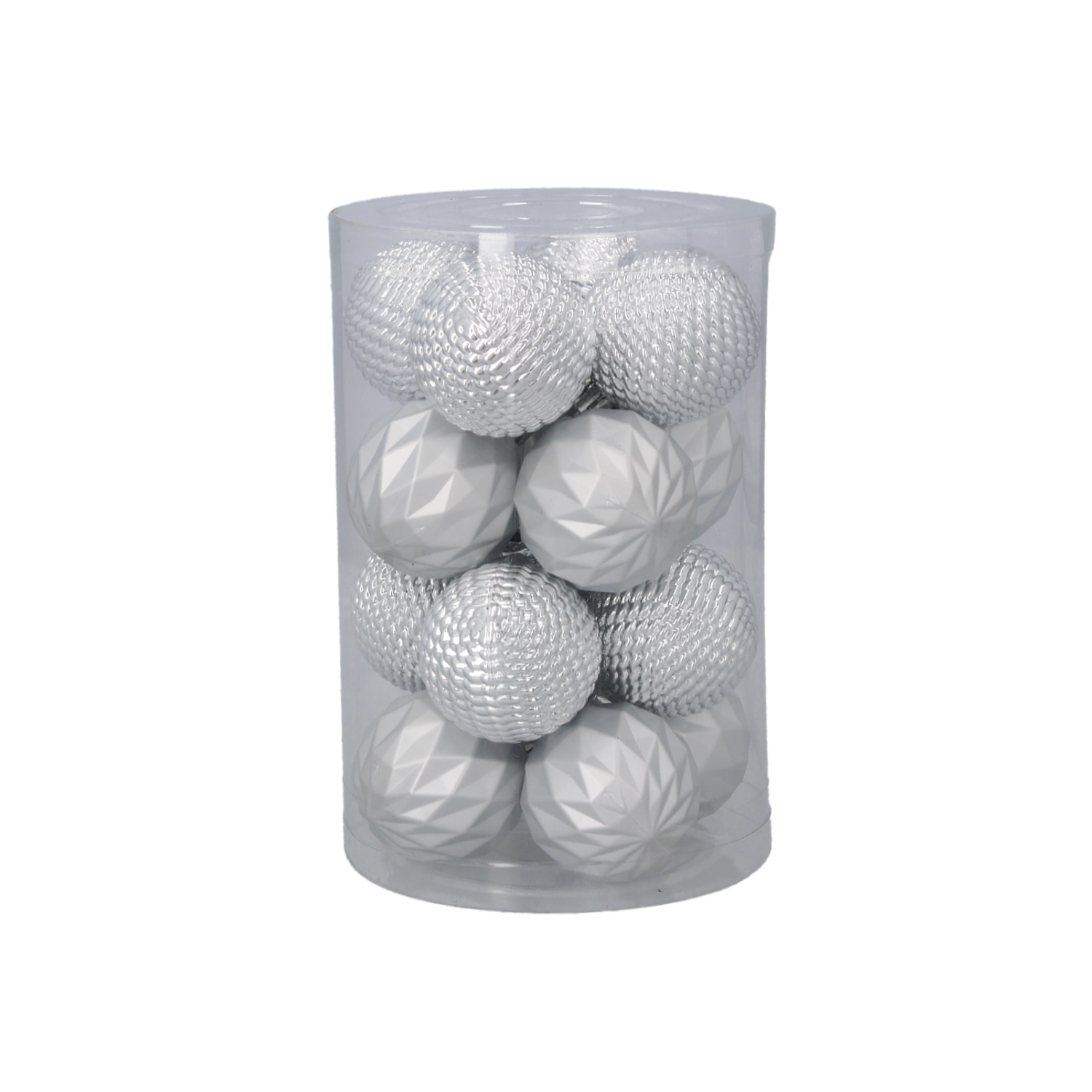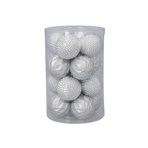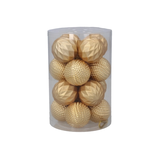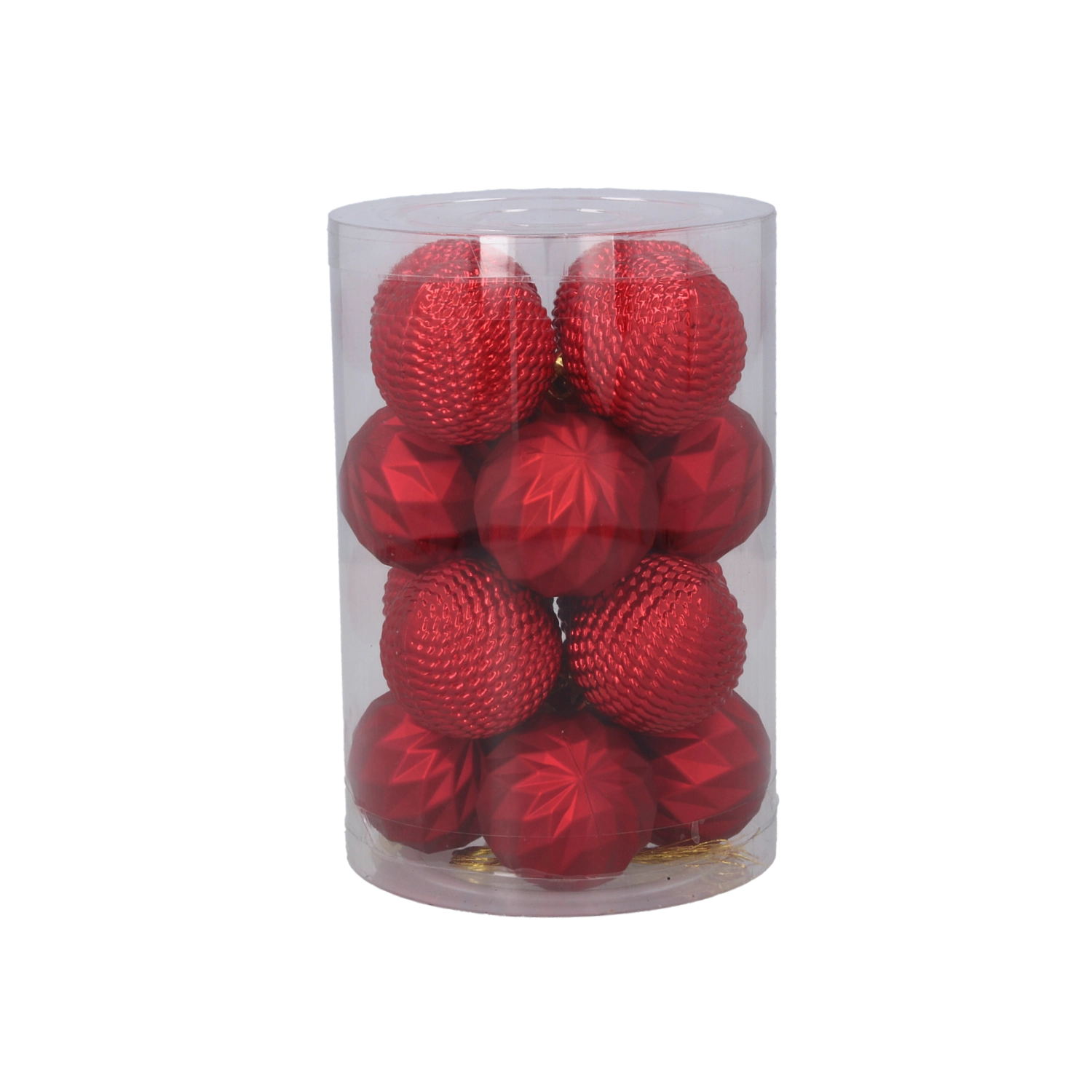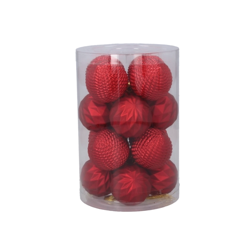 Élégant set de 16 décorations de Noël de 4 cm de diamètre, dans une combinaison de couleurs rouge, or et argent, qui apporte au sapin un aspect traditionnel et festif. Les décorations en matériau incassable sont sûres, légères et durables. Un emballage pratique en tube transparent facilite le rangement et le transport.