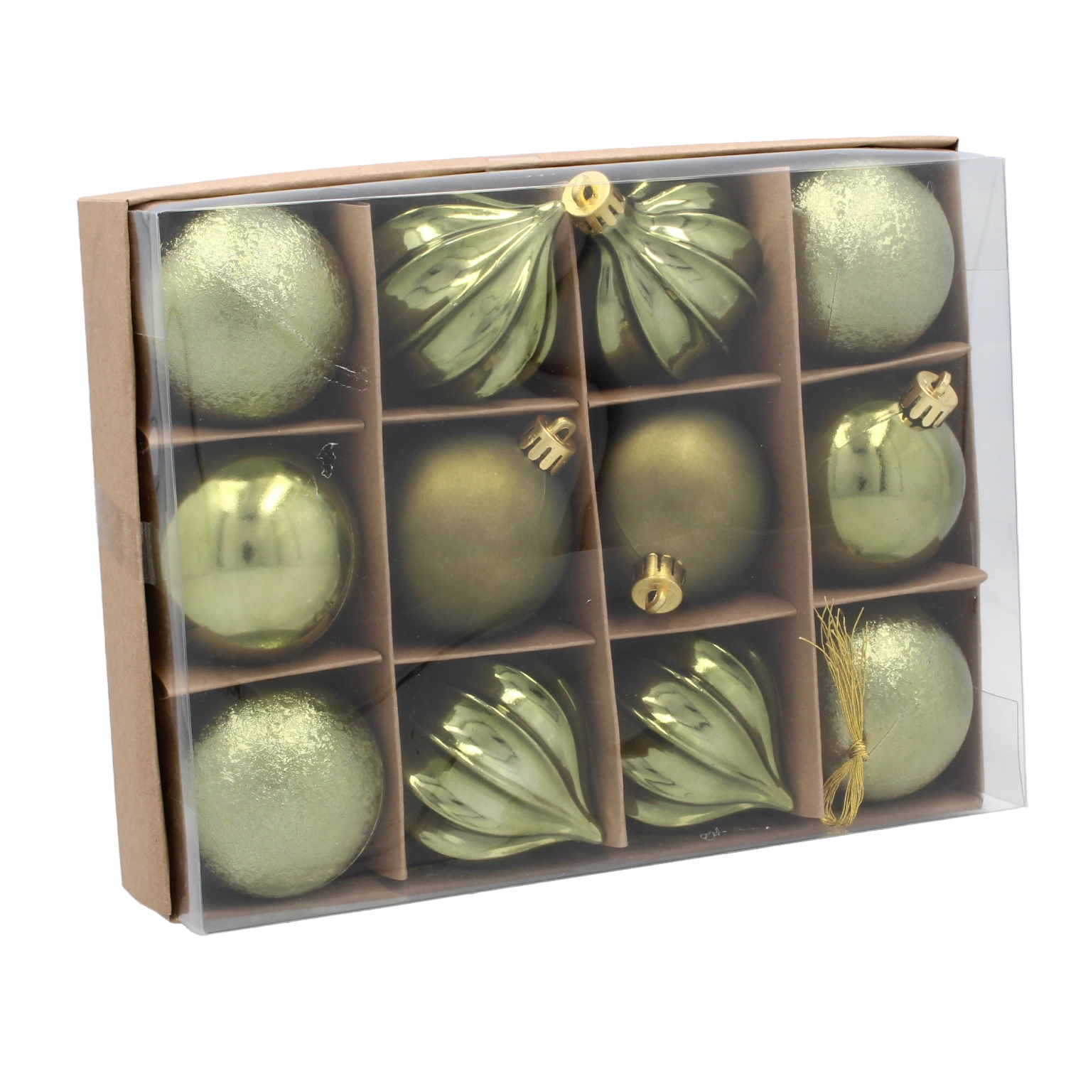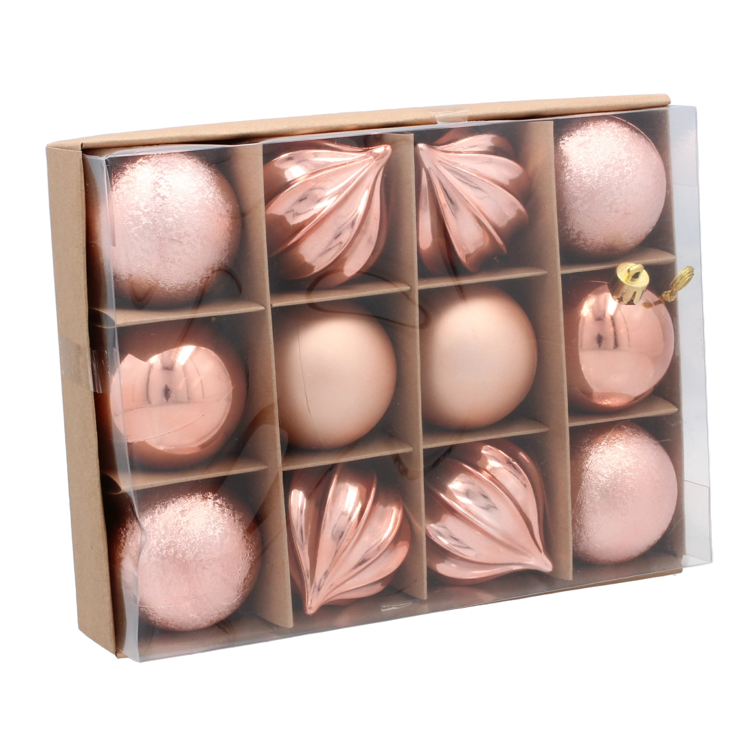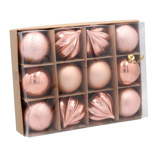 Créez une atmosphère festive harmonieuse grâce à ce set de 12 décorations combinant trois teintes tendance – olive, cuivré et graphite. Chaque boule mesure 6 cm de diamètre et, grâce aux différentes finitions et motifs, ajoute facilement de la profondeur et du style à votre décoration.