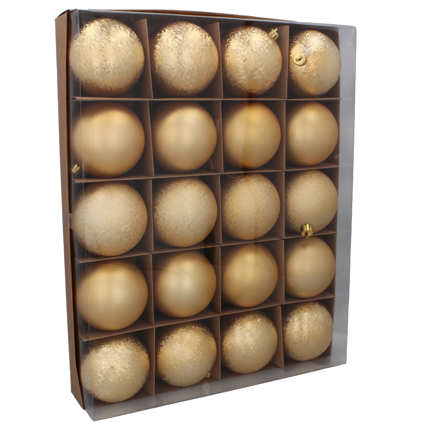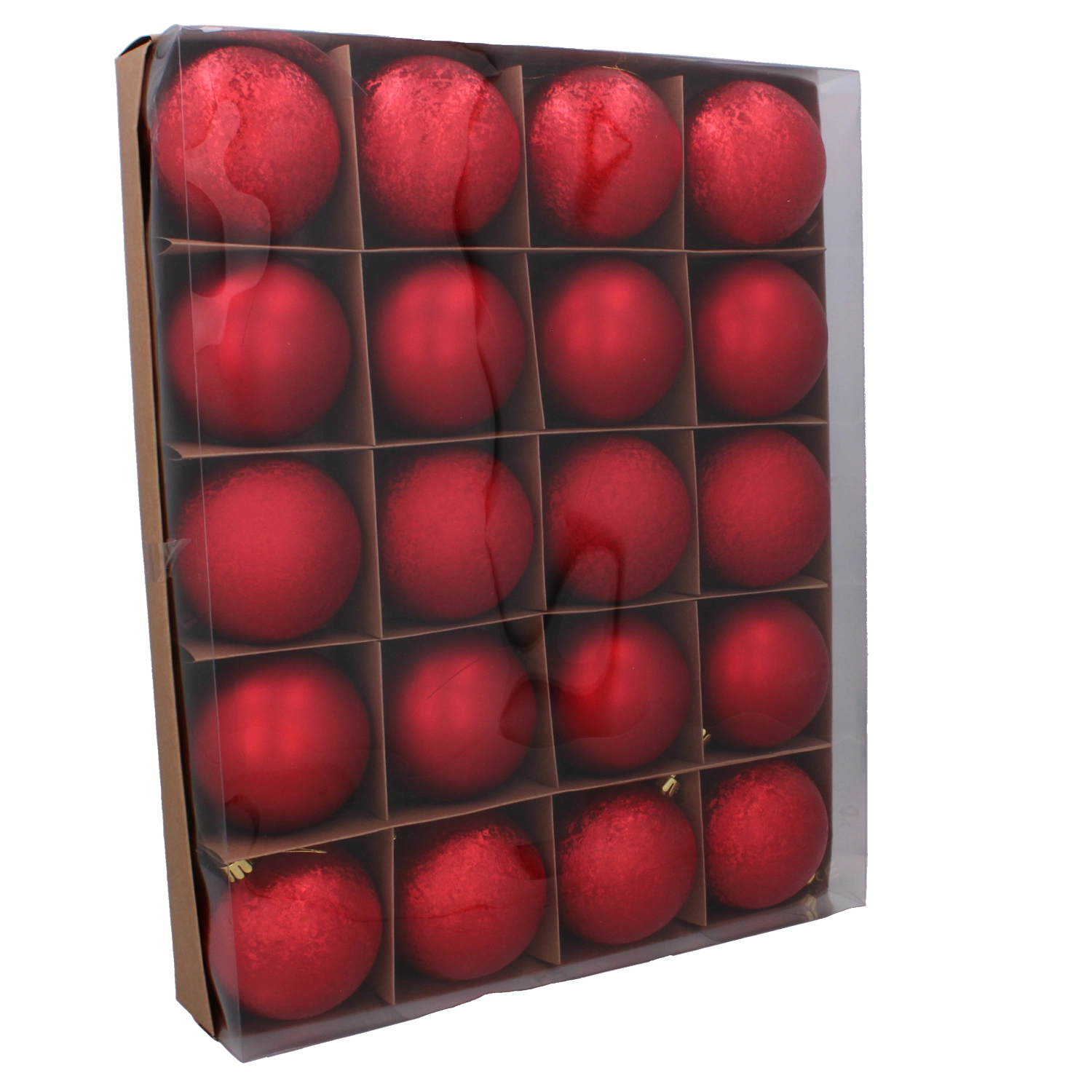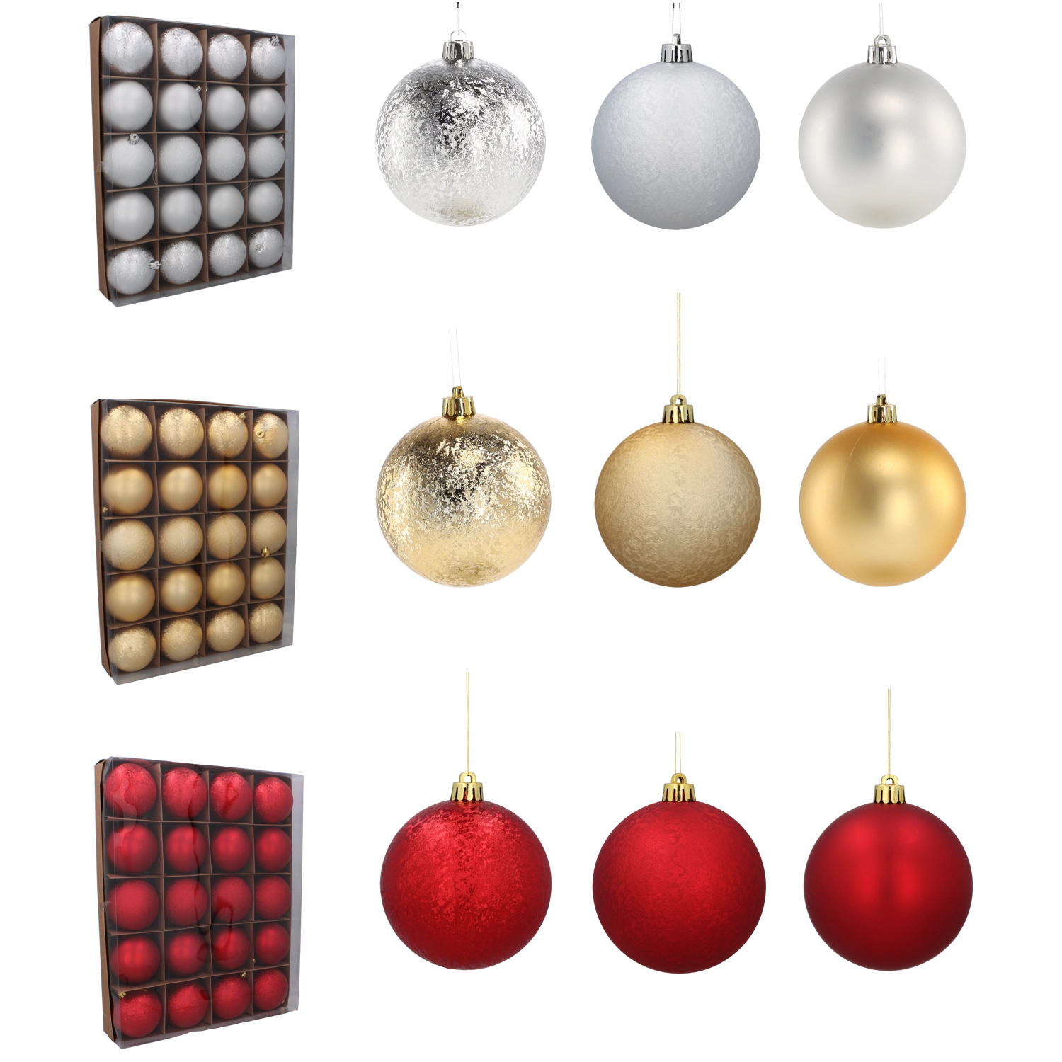 Ce set polyvalent comprend 20 boules : 8× mates, 4× texturées et 8× brillantes. Grâce à ce ratio étudié de finitions, vous créez facilement de la profondeur et des reflets sur le sapin, la couronne ou dans vos compositions décoratives. Les couleurs rouge, doré et argenté s’accordent à merveille et soulignent l’atmosphère traditionnelle de Noël.