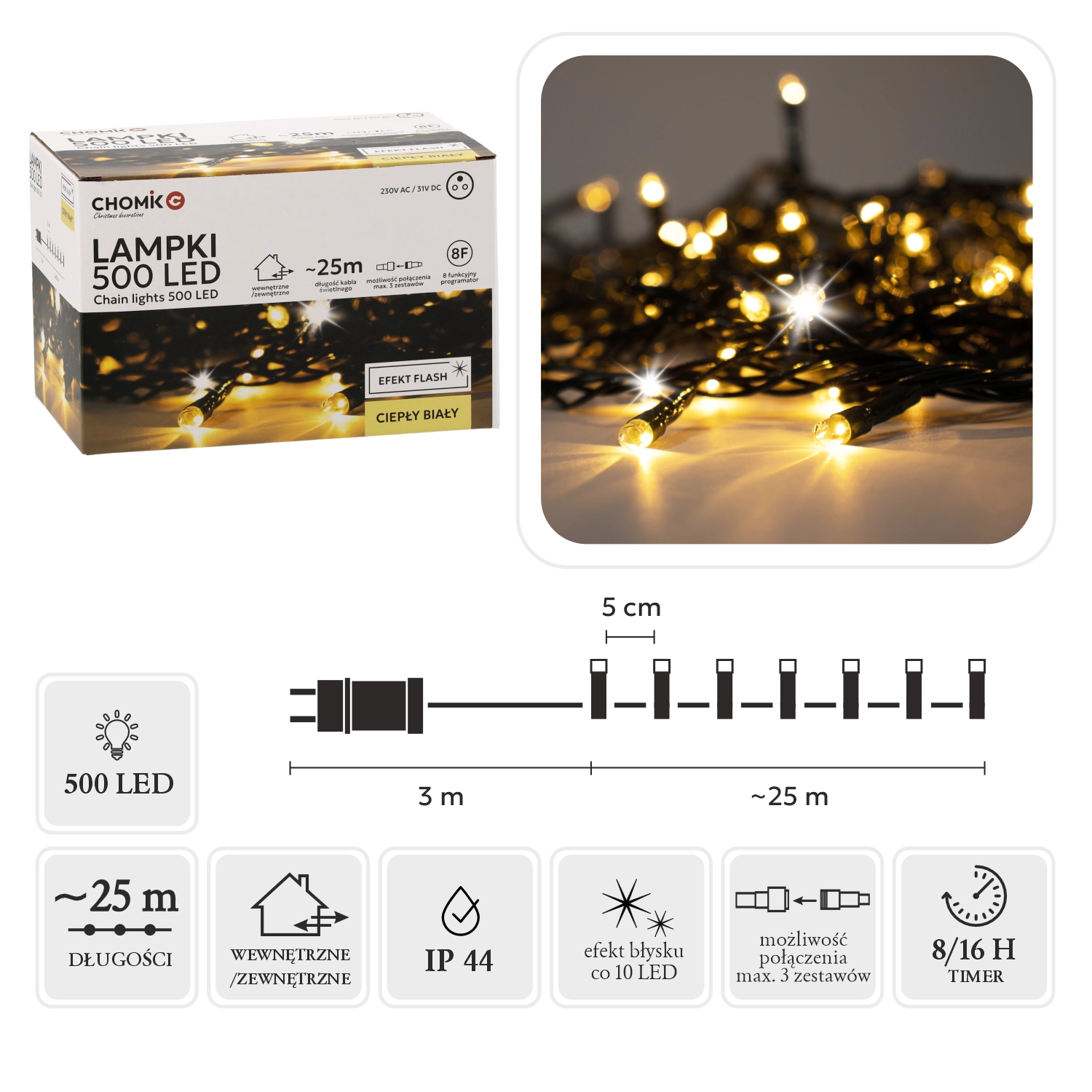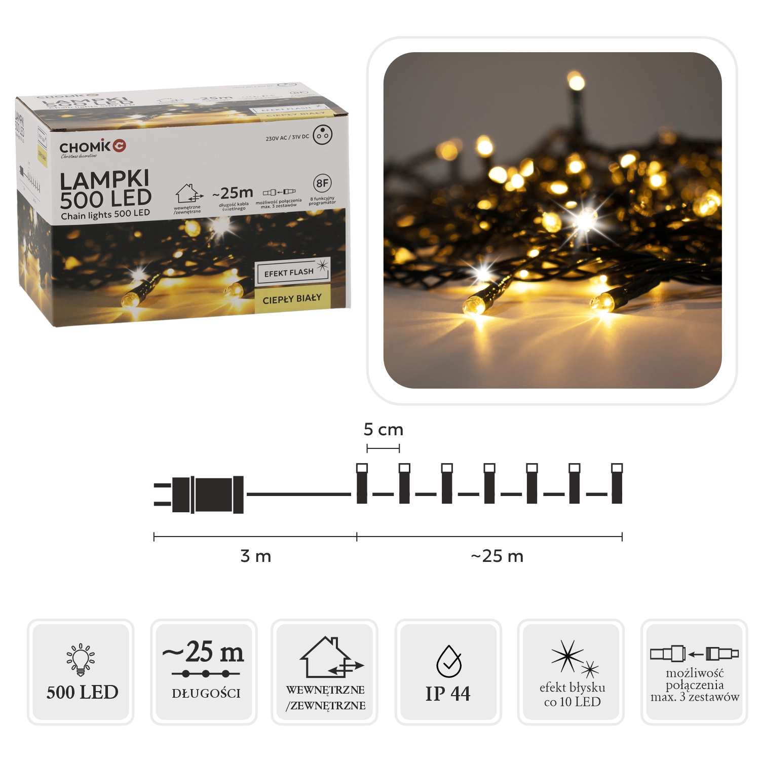 Guirlande de Noël LED 500 LED blanc chaud avec éclat froid, 28 m pour intérieur et extérieur