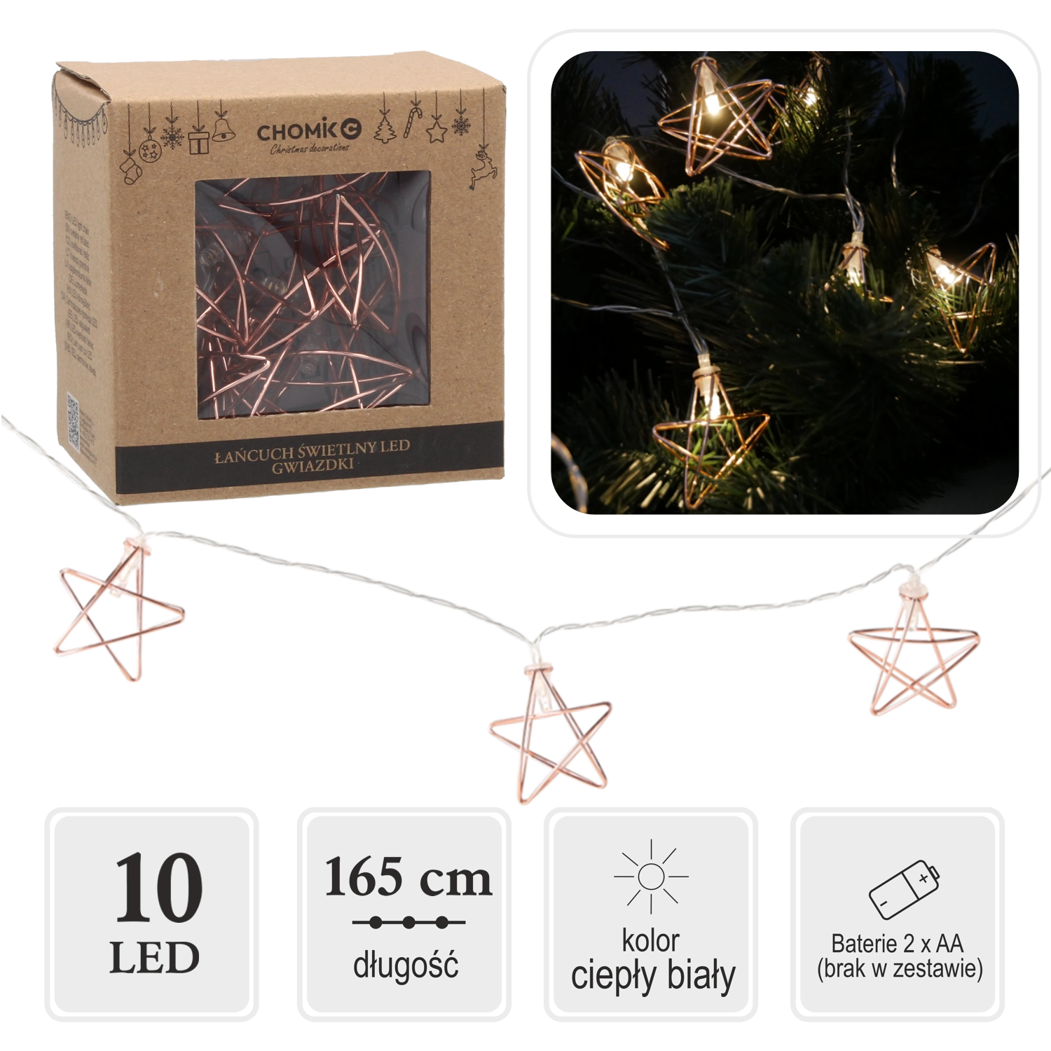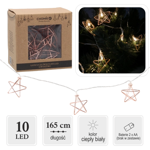 Illuminez votre intérieur d'une atmosphère féerique avec une guirlande lumineuse dotée de 10 étoiles LED en blanc chaud. Grâce à son alimentation par piles, vous pouvez l’installer partout – sans câbles ni prises. Idéale pour les décorations de Noël, les soirées romantiques et pour réchauffer votre décoration intérieure.
