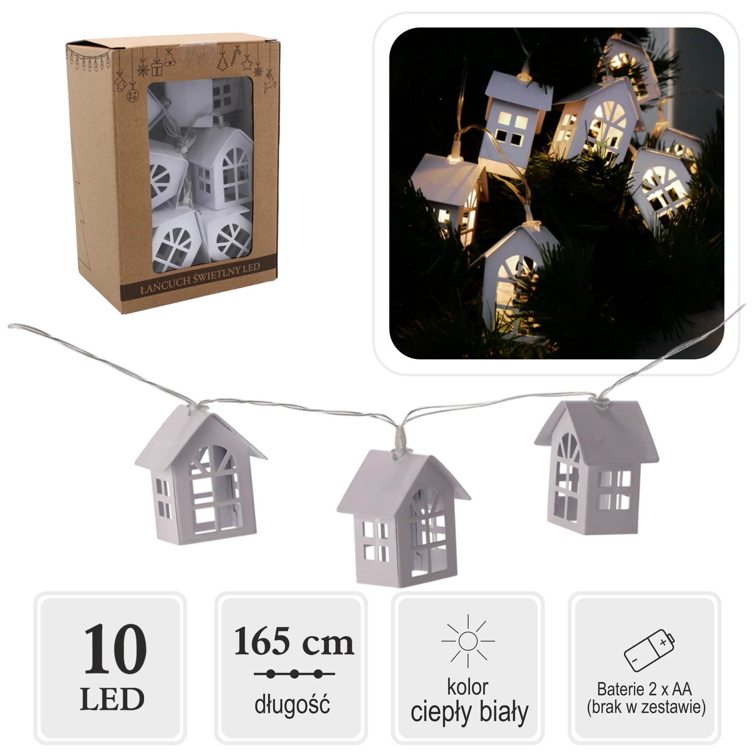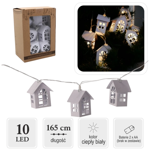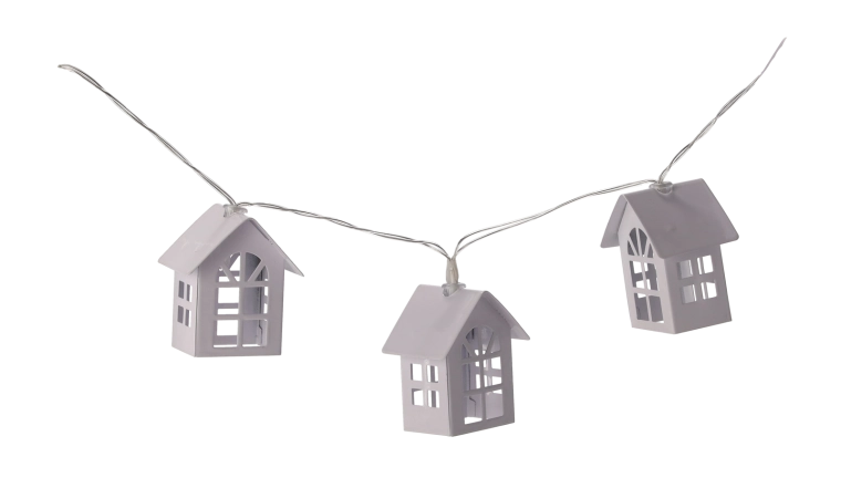 Créez une atmosphère féerique avec cette guirlande lumineuse ornée de petites maisons en métal. Chaque maisonnette diffuse une lumière blanc chaud qui apporte une touche chaleureuse et cosy à votre intérieur. Grâce à son alimentation par piles, vous pouvez l’installer partout sans câbles ni contraintes.
