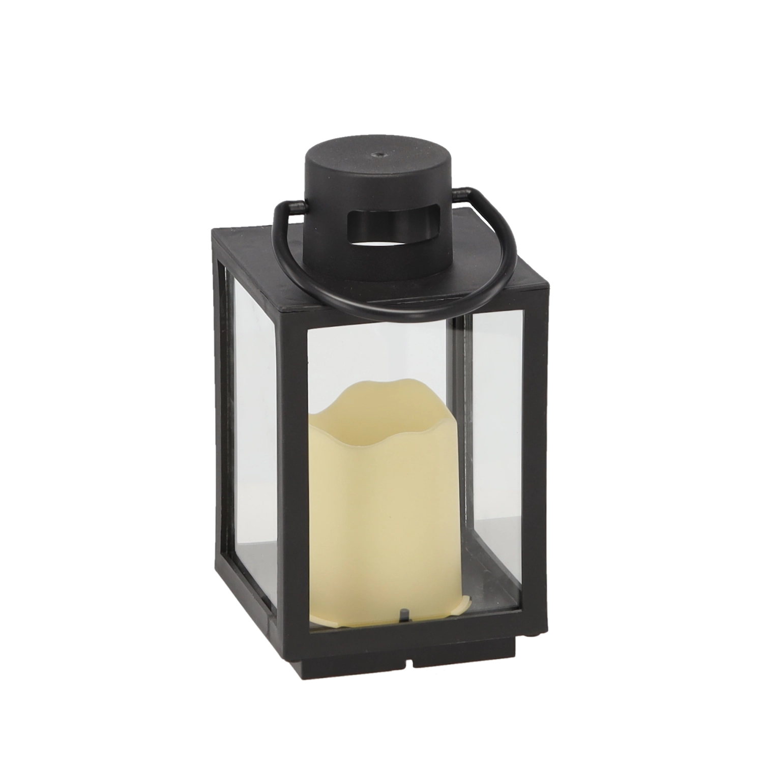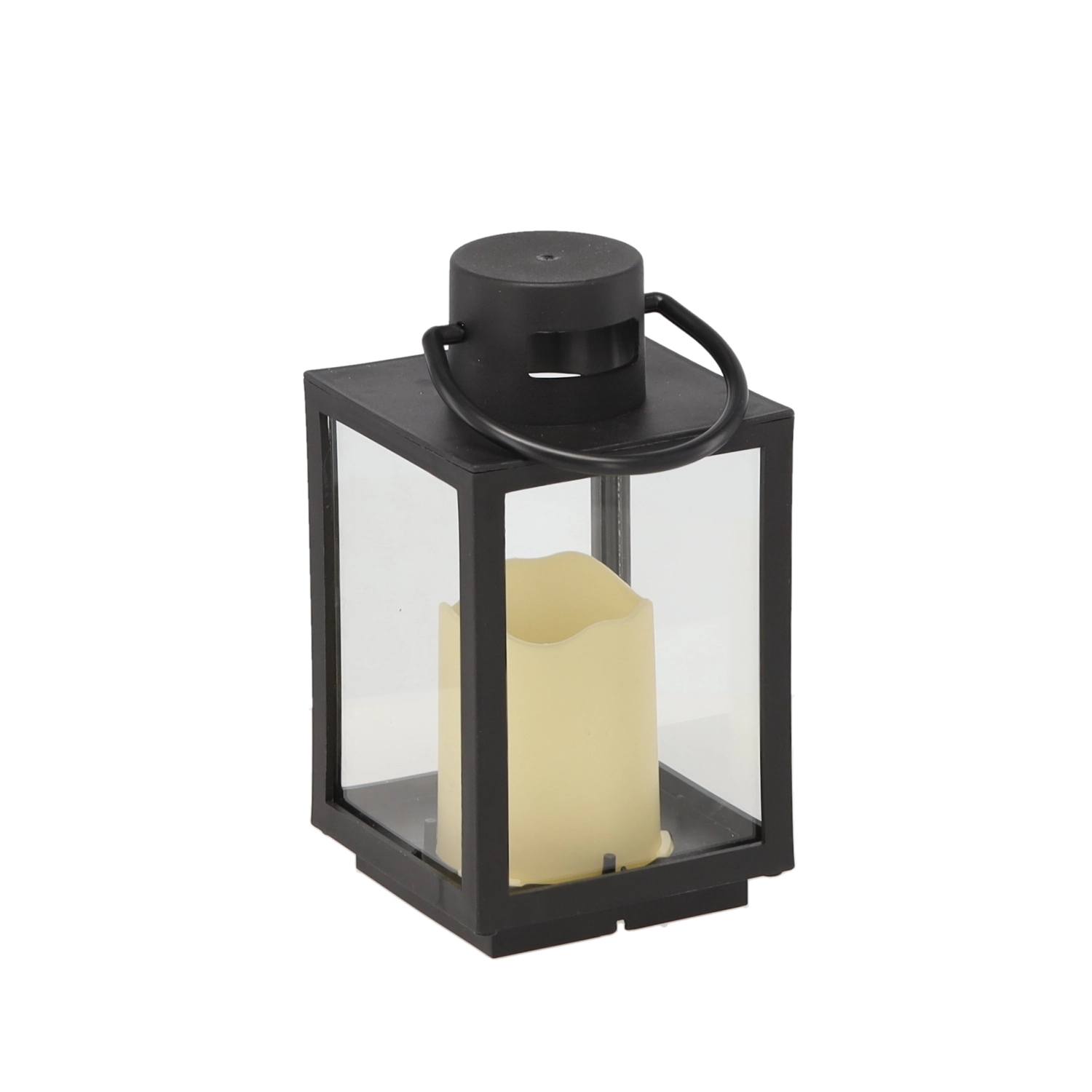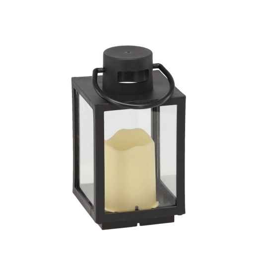 Le cadre en métal noir avec vitres transparentes met en valeur la lumière de la bougie et se marie facilement avec des intérieurs modernes comme traditionnels.