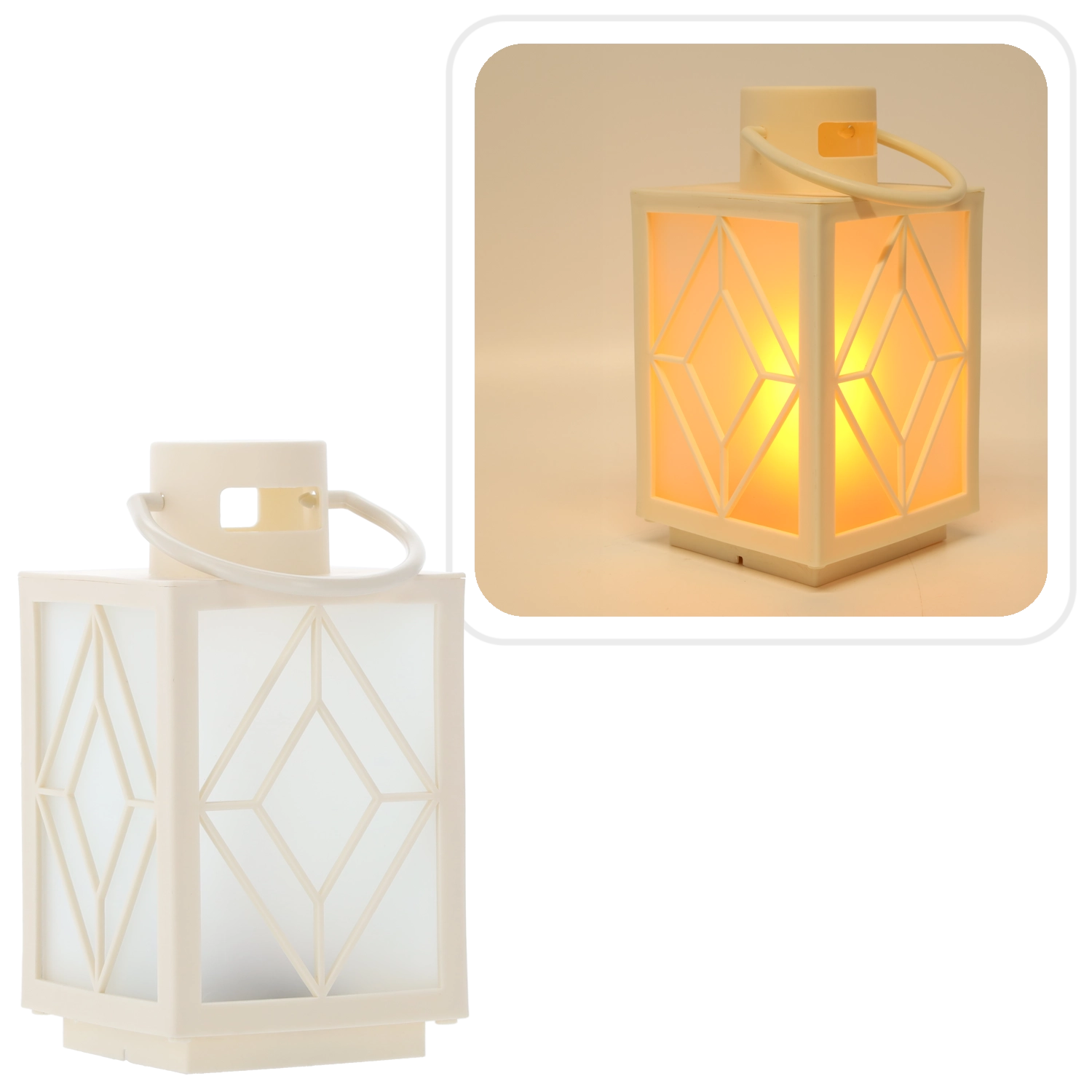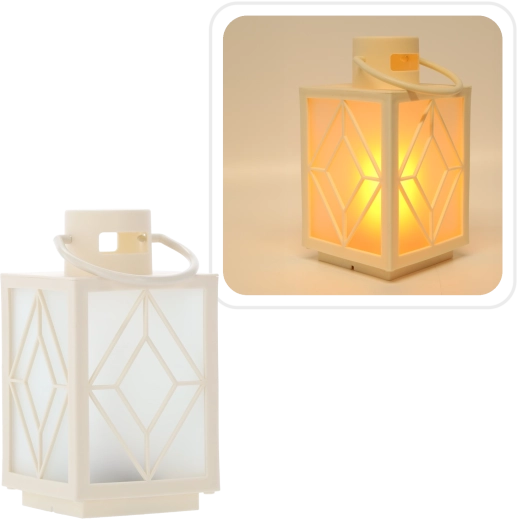 Décorez votre intérieur d’une douce lueur chaleureuse. Ce lampion décoratif blanc avec panneaux effet givré et motif géométrique offre un éclairage agréablement diffus rappelant une bougie, sans fumée ni cire. Idéal pour la déco de l’Avent, la détente du soir ou une table de fête.
