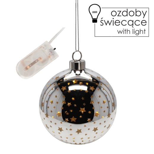 Cette décoration de Noël en verre au coloris argent moderne et parsemée de petites étoiles scintillantes est idéale pour décorer le sapin, une couronne ou une table de fête. Les LED intégrées diffusent délicatement la lumière à travers les motifs étoilés, créant un effet lumineux saisissant, sans échauffement et à faible consommation d’énergie.