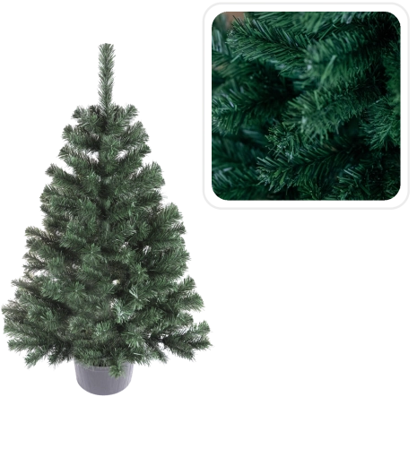 Un choix idéal là où un grand sapin classique ne trouve pas sa place – parfait pour les petits espaces et les intérieurs modernes. L’arbre ne demande ni arrosage ni nettoyage des aiguilles, est immédiatement prêt à être exposé et peut servir de décoration discrète ou de base pour des lumières, mini-boules et rubans.