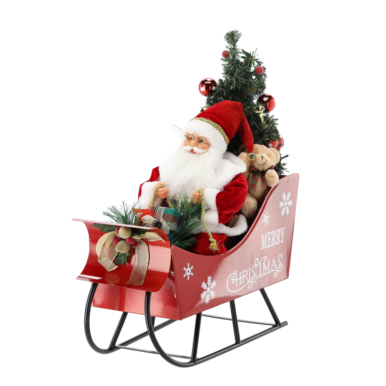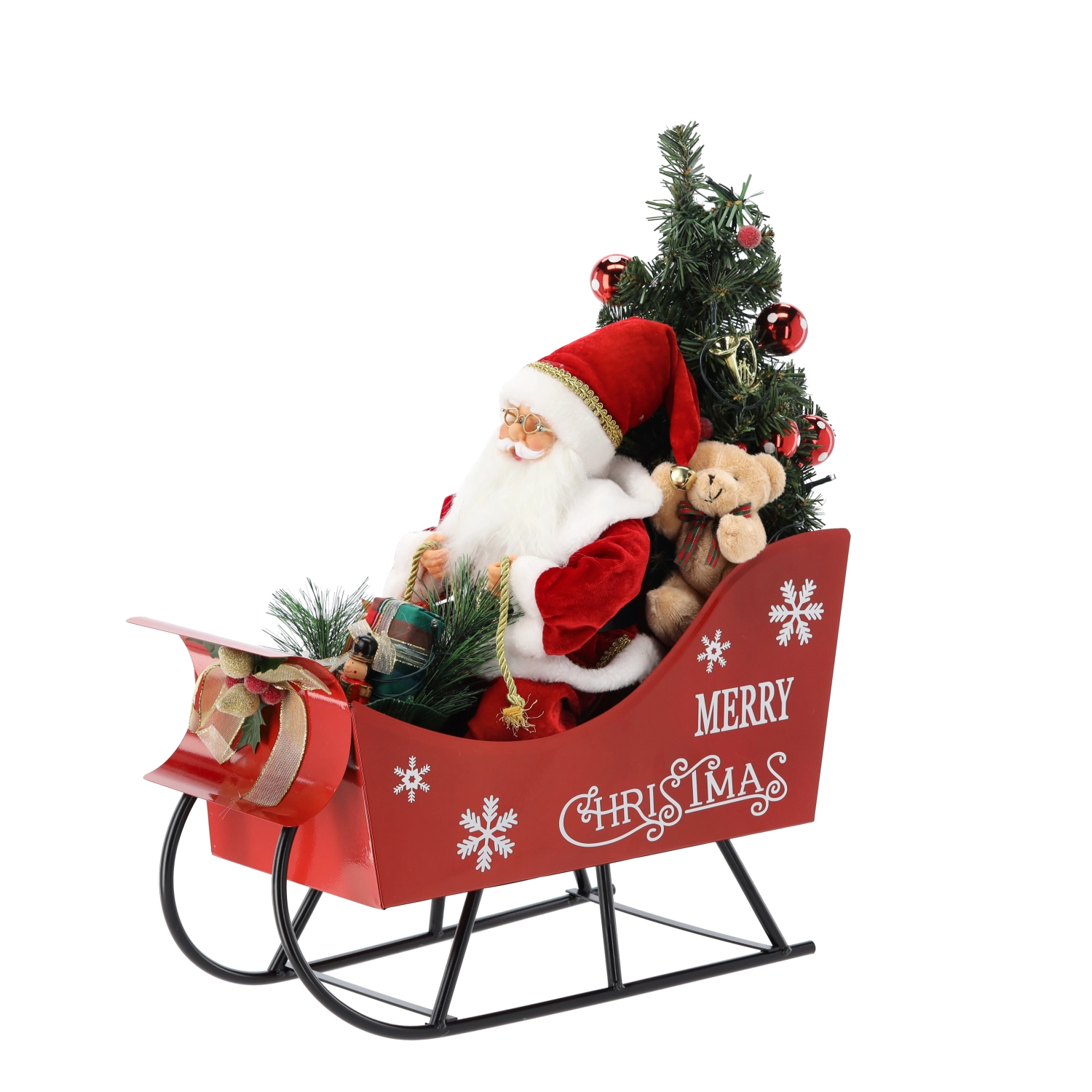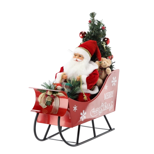 Saint-Nicolas en traîneau avec sapin de Noël à LED et mélodies 60 cm