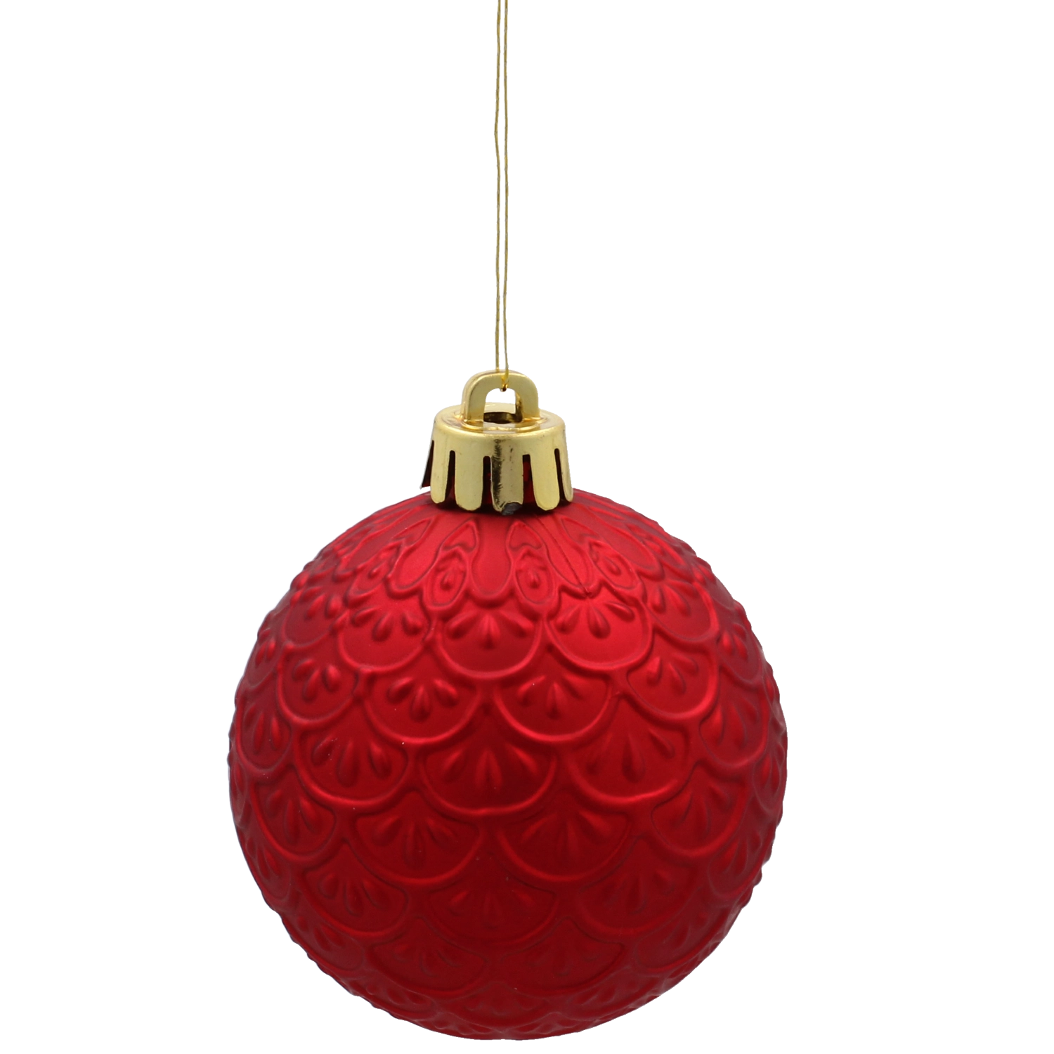 Élégant lot de dix décorations de Noël de 6 cm de diamètre, dans une combinaison de couleurs rouge et vert bouteille, qui apporte un charme traditionnel à votre sapin. Matériau résistant incassable et mélange de finitions brillantes et mates reflétant joliment la lumière et garantissant une longue durée de vie. L’emballage pratique en tube transparent facilite le rangement et le transport.