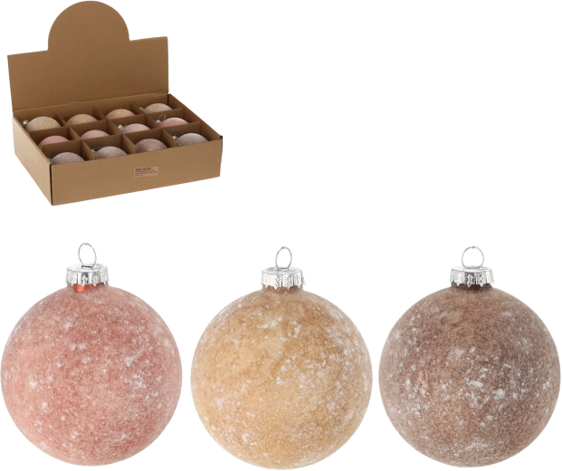 Élégante boule de Noël en verre de 8 cm de diamètre qui apporte à votre sapin un éclat unique et une magie festive. Chaque pièce est peinte et décorée à la main, ce qui la rend originale et facile à assortir à votre décoration grâce à un assortiment de couleurs et de motifs. La structure légère en verre de qualité facilite la suspension et garantit une longue durée de vie.