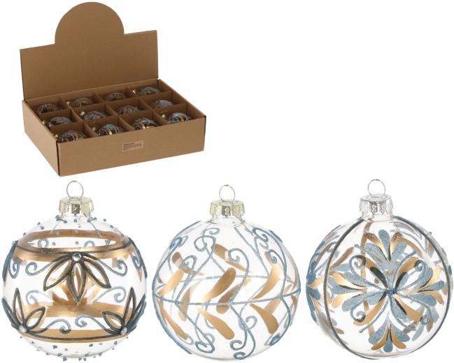 Le coffret comprend 12 pièces avec un assortiment de motifs, afin de composer un ensemble équilibré et visuellement attrayant sur le sapin. Le verre de qualité garantit résistance et longévité, tandis que la surface brillante offre un éclat lumineux sous les guirlandes.