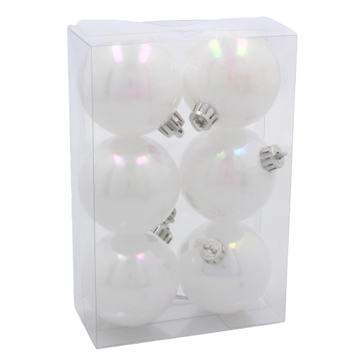 Peaufinez votre décoration de Noël dans les moindres détails. Les boules blanches nacrées de 6 cm apportent harmonie, élégance intemporelle et reflets délicats qui subliment la beauté de votre sapin et de vos compositions festives. Grâce au plastique résistant, elles conviennent aux foyers avec enfants ou animaux de compagnie.