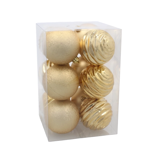 Set de boules de Noël 8 cm – rouge, or et argent, 12 pcs