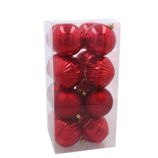 Les boules lisses et très brillantes en rouge, or et argent reflètent la lumière et apportent une touche de luxe à la décoration. Idéales comme accents pour les parties supérieures du sapin.