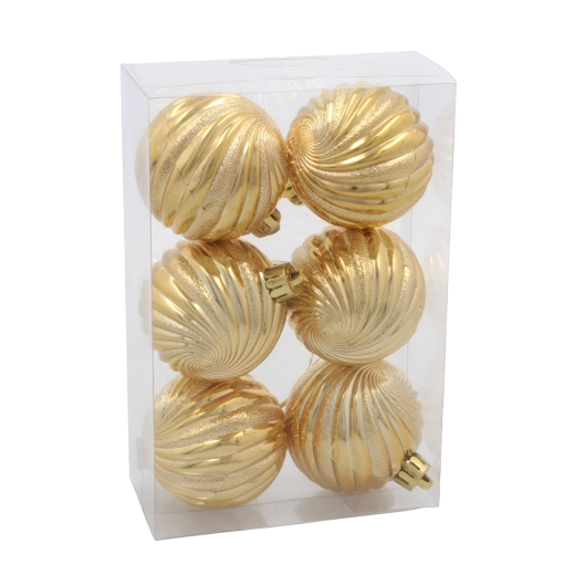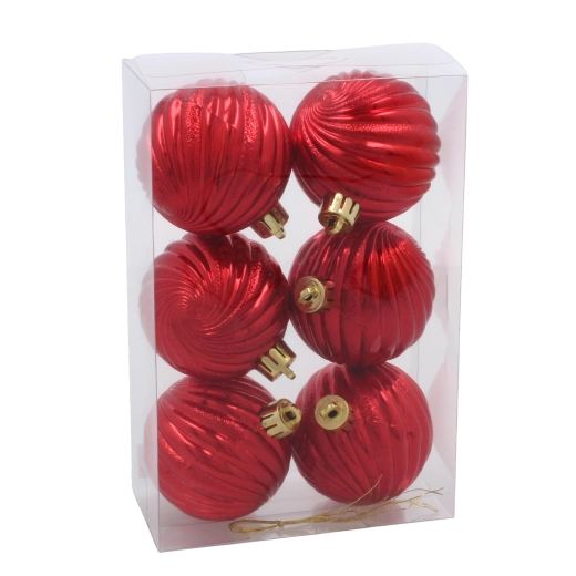 Donnez à votre sapin une brillance classique avec un set de six boules de Noël de 6 cm de diamètre, en rouge, or et argent. Les décorations sont en matériau incassable, légères et sûres pour les enfants, avec un relief spiralé brillant et des ficelles pratiques pour un accrochage facile.