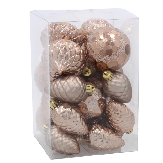 Un set stylé de 22 décorations de 6 cm de diamètre, en combinaison bleu foncé et beige‑doré, apportera à votre décoration un look élégant et sophistiqué. Le matériau plastique léger facilite la suspension, tandis que les finitions mates, brillantes et pailletées créent un contraste saisissant et un effet luxueux sur le sapin comme dans toute la décoration festive.