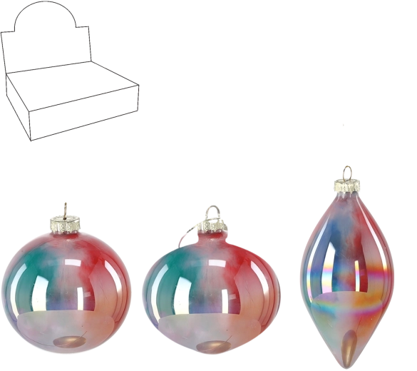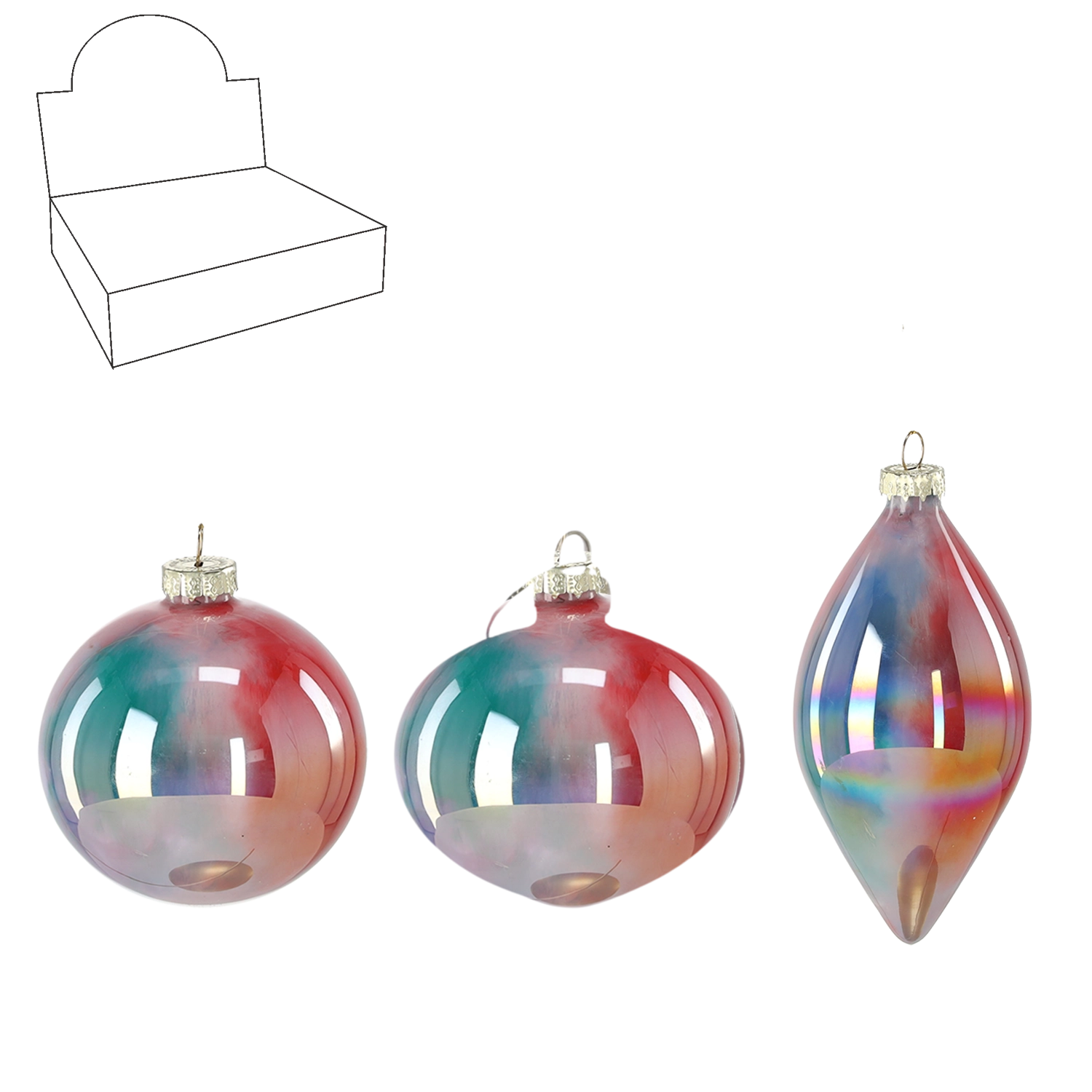 Créez une atmosphère festive avec des boules de Noël en verre au fini opalisant, qui reflètent magnifiquement la lumière et soulignent la magie des fêtes. La combinaison de formes rondes et allongées s’accorde facilement avec le reste de votre décoration et apporte un look élégant et moderne.