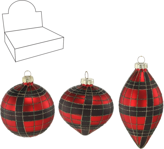 Boule de Noël en verre rouge et noir à motif carreaux – mélange de motifs