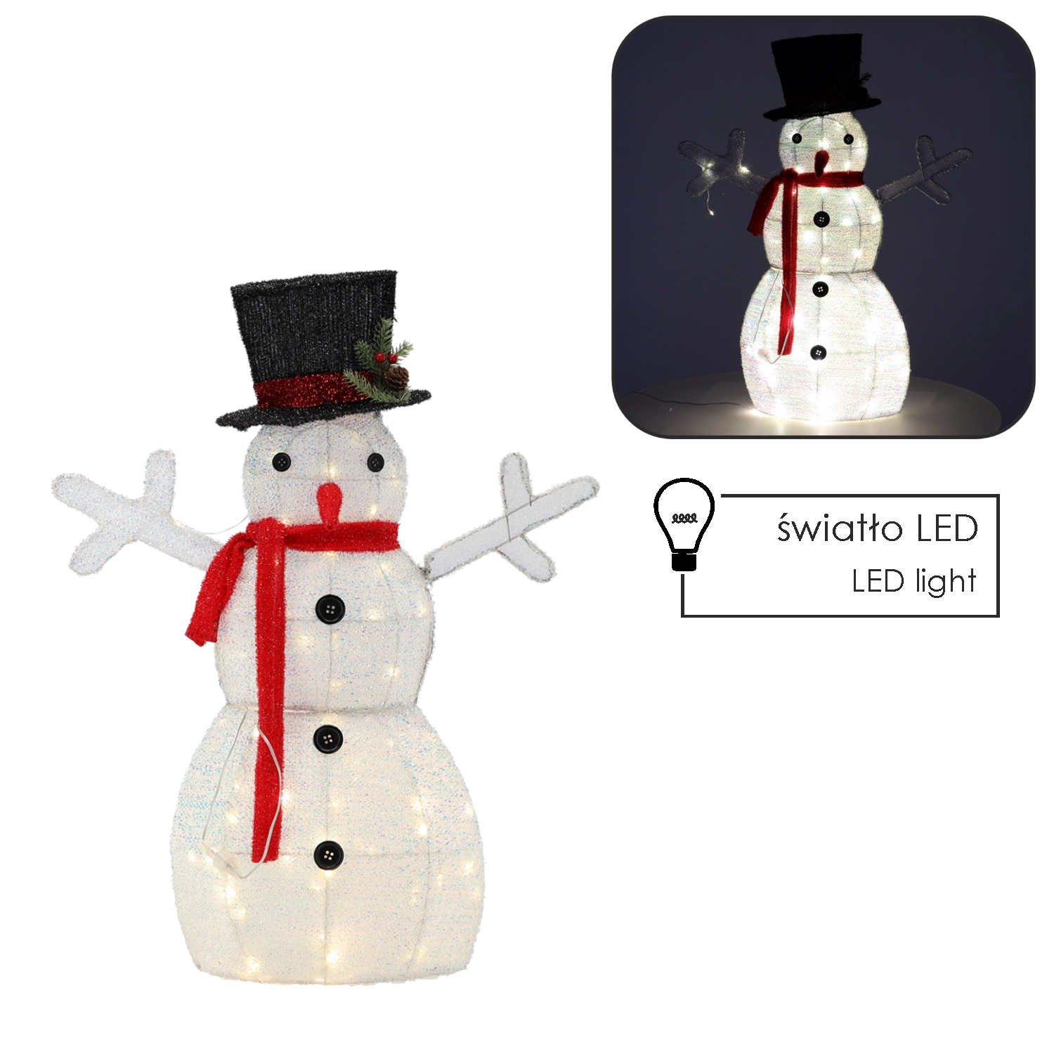 Misez sur un motif classique dans une interprétation moderne. Ce bonhomme de neige lumineux deviendra le point focal de votre déco – il associe un design élégant, un éclairage LED blanc et éclatant et une alimentation secteur fiable. Idéal comme déco autonome ou en complément du sapin ou d’une scène hivernale.