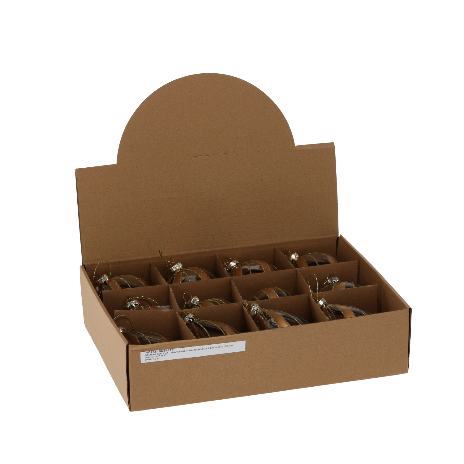 Boules en verre élégantes pour une décoration de Noël parfaite. Grâce au verre transparent et aux ornements délicats, elles paraissent luxueuses et intemporelles. L’emballage contient un assortiment de motifs en formes rondes et allongées, idéal pour une harmonisation stylée du sapin et une atmosphère festive.